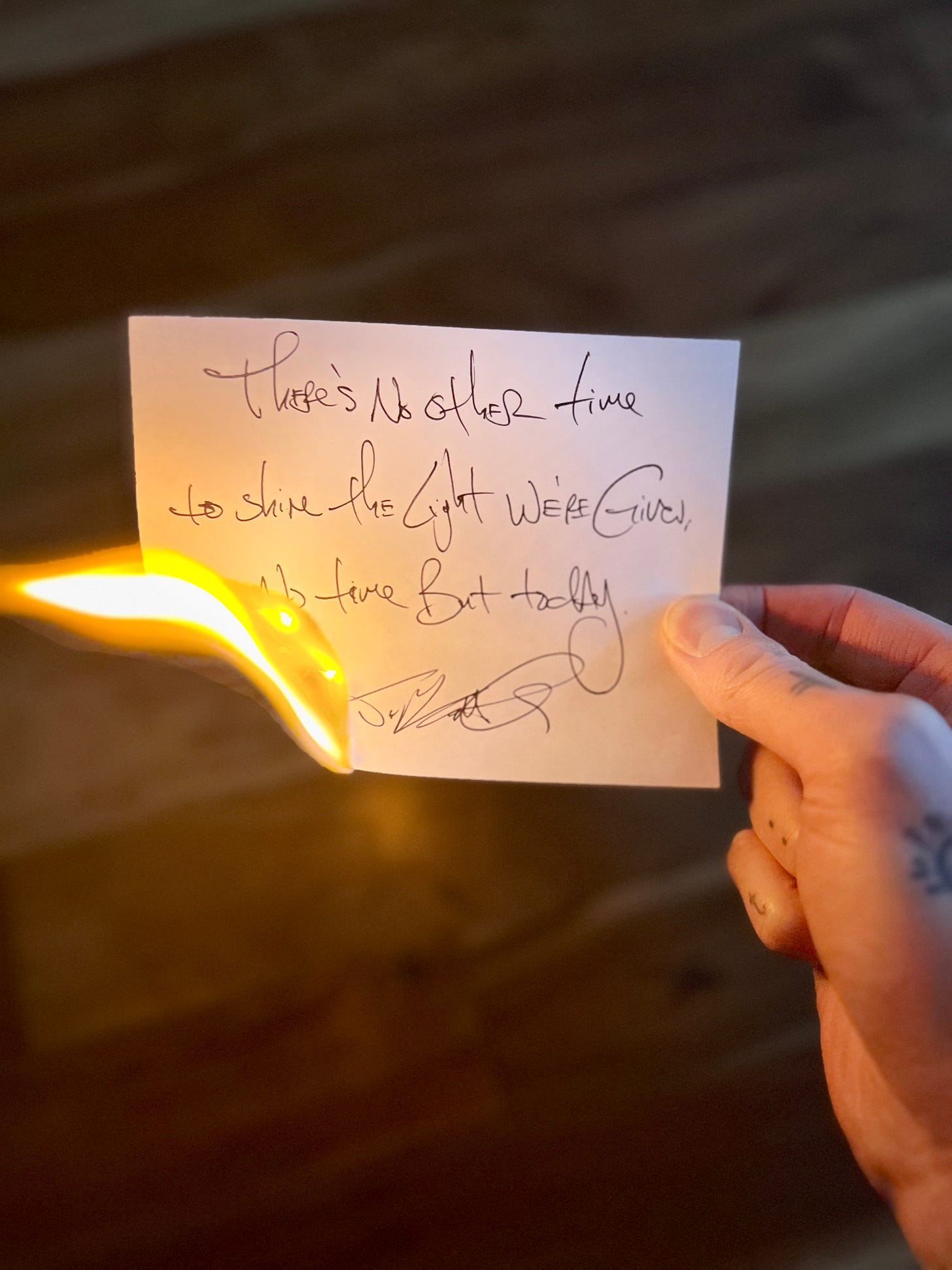 We never know the time we’ve got, a fact I mention frequently on this Signal Fire to hopefully remind you of your own flame, your own lantern, your own spark, your own flashlight, your own torch glow in a landscape of darkness. You SHINE, you lot, and the illumination is blinding, and I Hope you allow yourself the courtesy of seeing it, of acknowledging it, of loving it, as I do.