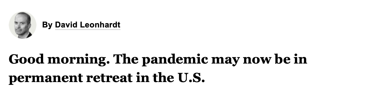 A barometer I’ve used over this last strange 16 or so months, a tool to gauge how things are truly going, has been the New York Times. I’ve found, — I could be wrong on this but in all the research I did to find honest, impartial, and fact-based reporting, the NY Times most generally did me right — that despite my deeply human desire for things to just “Be ok,” they still very much were not. The headlines that kept popping up on the Times reminded me day in and day out that as hopeful as I was, there were still ten million reasons to be cautious, fearful, and generally bleak. This was not done in a cruel way, not by any fault of the Times, but because in general, the world was in a pretty rough spot, still is, and this far-flung idea of a ‘new beginning’ or a spirit feeling resurrected at all was ages away. Then, then, my friends, came the headline on May 21, and a quote in the article that gave me, silly me, a jolt of an unfamiliar feeling: Hope. Here’s that headline, so you can see what I saw that morning.