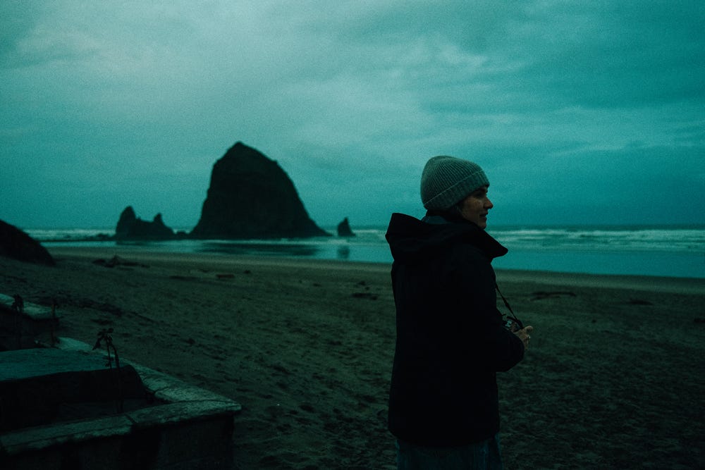 Woke the next morning to wander early on the beach, say hello to our old friend Haystack Rock, and of course get Lady G her much needed coffee and me a tea. It was quite literally the worst tea I’ve ever had, as there were these weird floating bits of somewhat burned brown rice in the bag, and it was also like $7. Insane. When the barista asked Sarah if it was “Sarah with an H?” she said yes. Somehow, she thought that meant the H went before the R. That’s a first. Wandered to Arcadia Beach, and started scouting locations for the Elopement ceremony that was to come the next day.