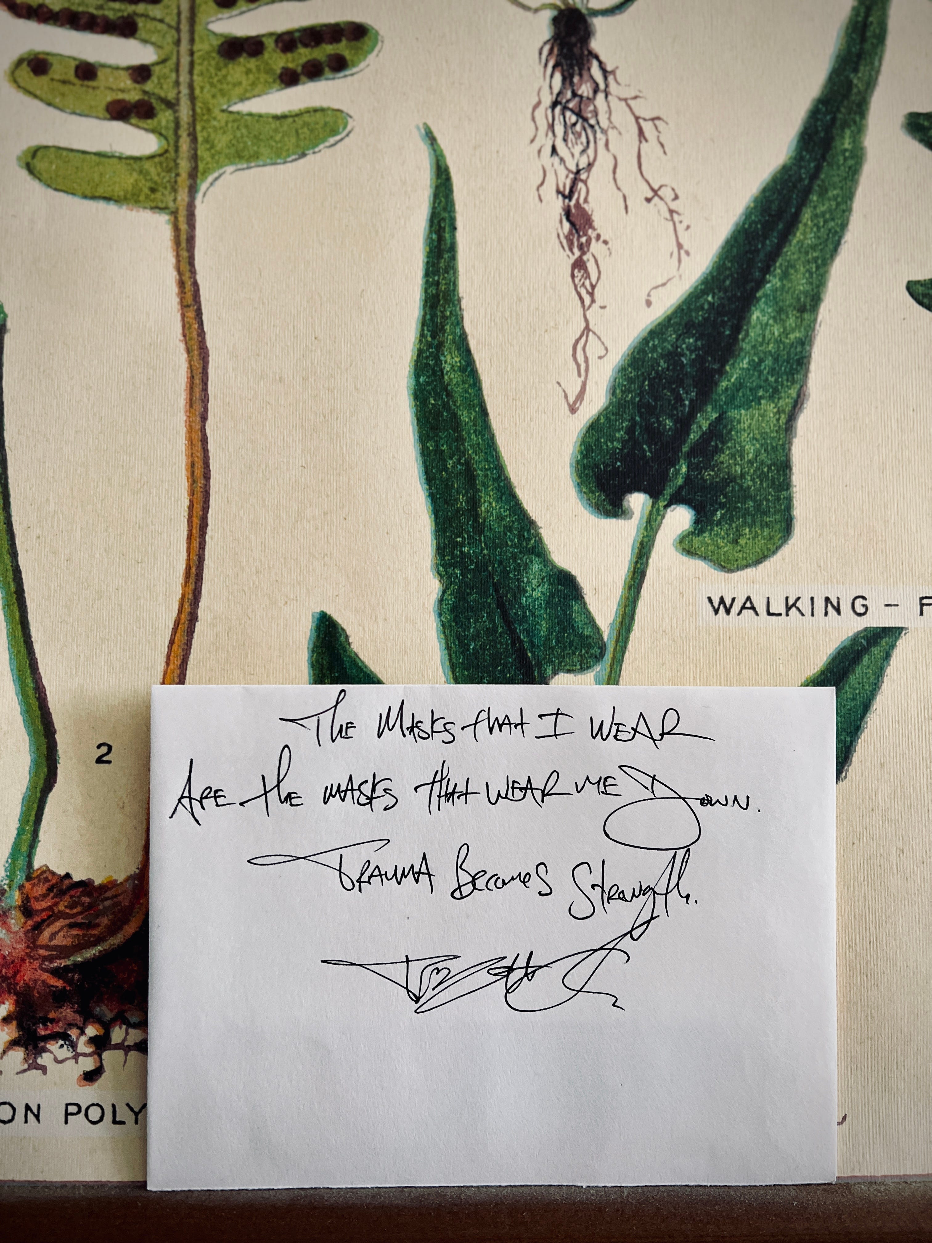 I wrote the poetry to stay afloat, in truth. I wrote because in poetry I could convince my spinning mind that I was somewhere else, that I wasn’t sitting in that fluorescently lit classroom where I could hear the electricity in the lights, and feel every degree of heat pumping from the archaic heaters by the windows. I wrote to get lost in my own world, rather than listen to the drone of the teacher teaching things I already knew, though I didn’t know how I knew. I wrote to live somewhere without rules, to disobey quietly, as I could not understand the why to all the because I was being fed by those in positions of any power. I wrote to mask, and I masked to make my passage easier, and I know this now.
