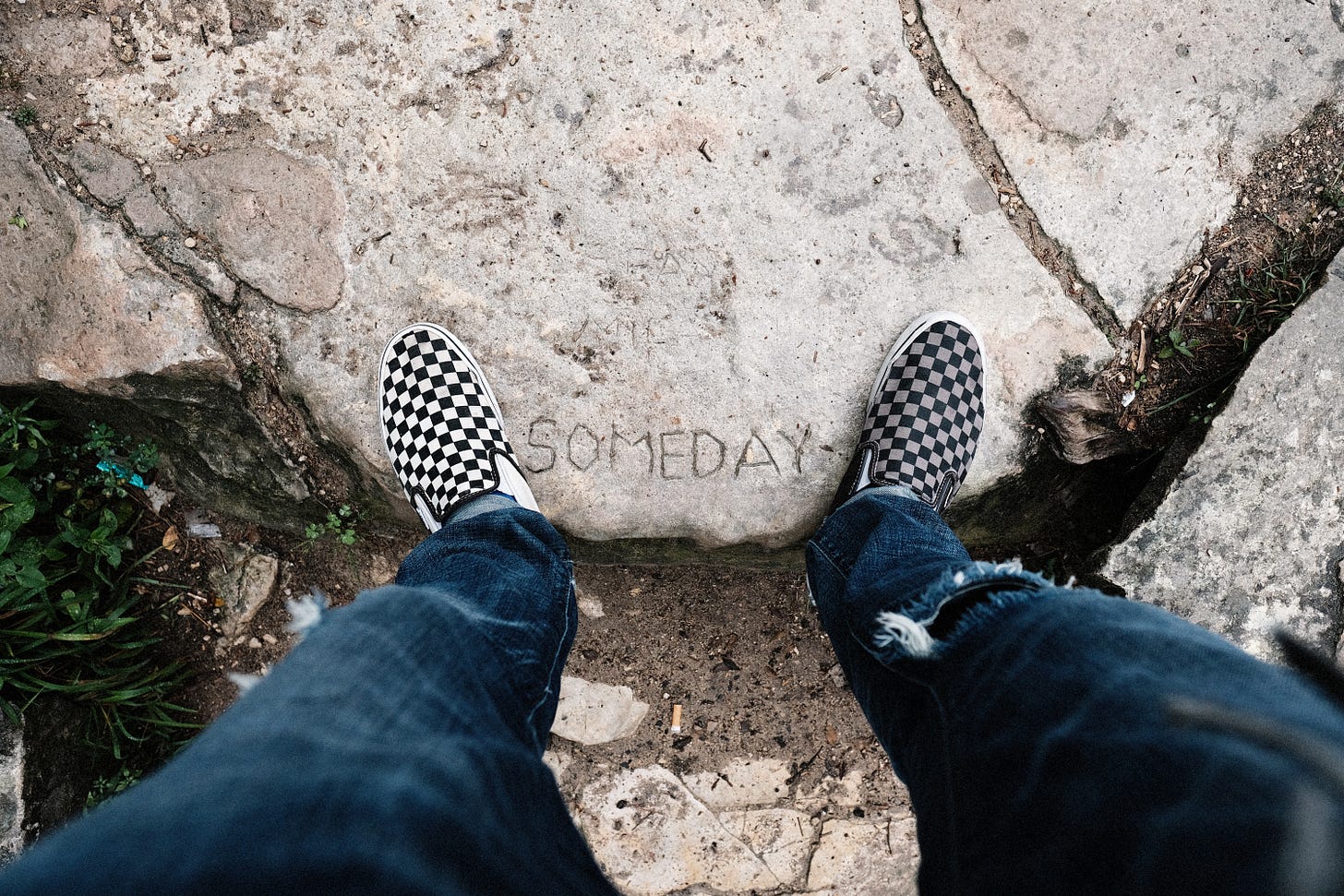 No greater threat to our joy than Someday. No greater burden to who we’re meant to be, what we’re meant to do, see, become, enjoy, witness, understand, than procrastination. Someday is the dirty word scrawled into the stone we stand upon, the cigarette butt and the trash, the broken bottle and decay that plants itself between us and happiness. Tomorrow, we think, we’ll begin then, I’m too tired today, there’s too much going on, too much to lose, too much to take care of first. Someday, we say into our own sad eyes staring back in the mirror, and think back to ten thousand yesterdays we said the same thing. We stand and look down at our own feet, dream up excuses that even convince ourselves, and we say them enough they become mantra, they become truth somehow.