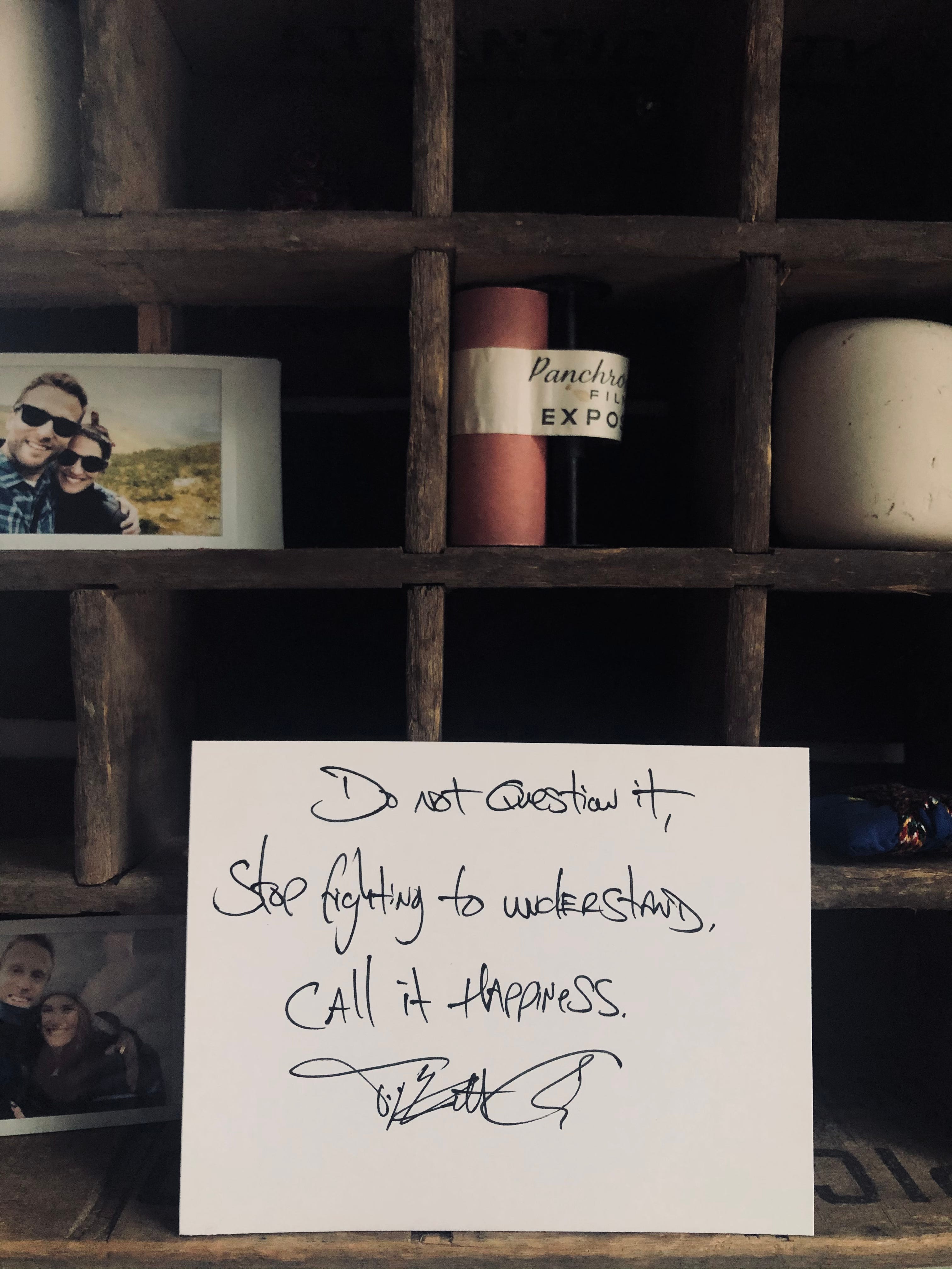 I’m here to ask a favor: For the next 1 month, every time you catch yourself feeling happiness, allow it in, and leave it the hell alone. Allow yourself to feel it, to enjoy it, and stop trying to hard to make it make sense. Give it a month, then check back in with me, let me know how you feel.
