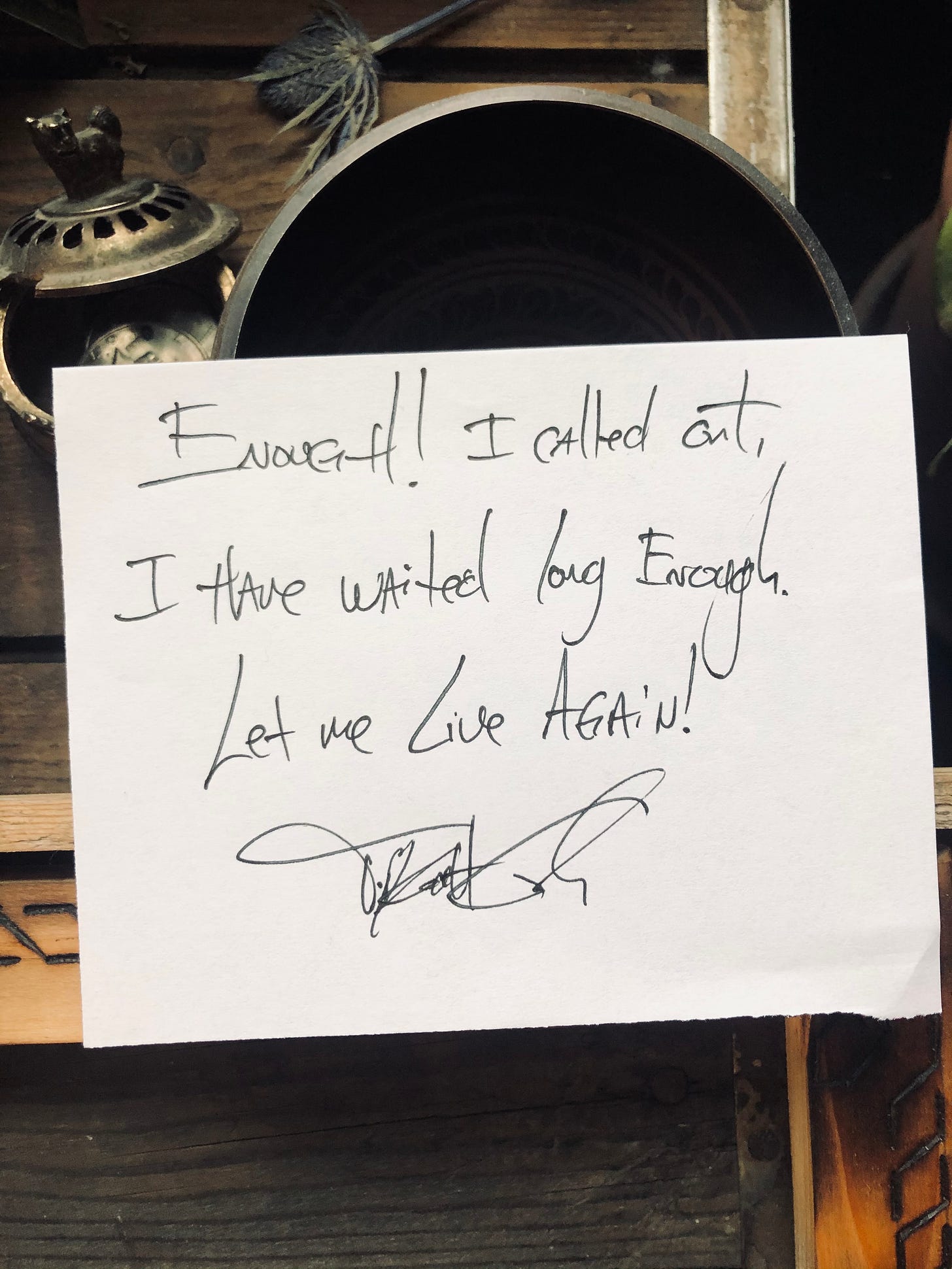Enough, we call out as one soul with 8 billion faces, enough we sing and listen for an echo that need not come. We have waited long enough, we have suffered in silence too long, it is time to live again.