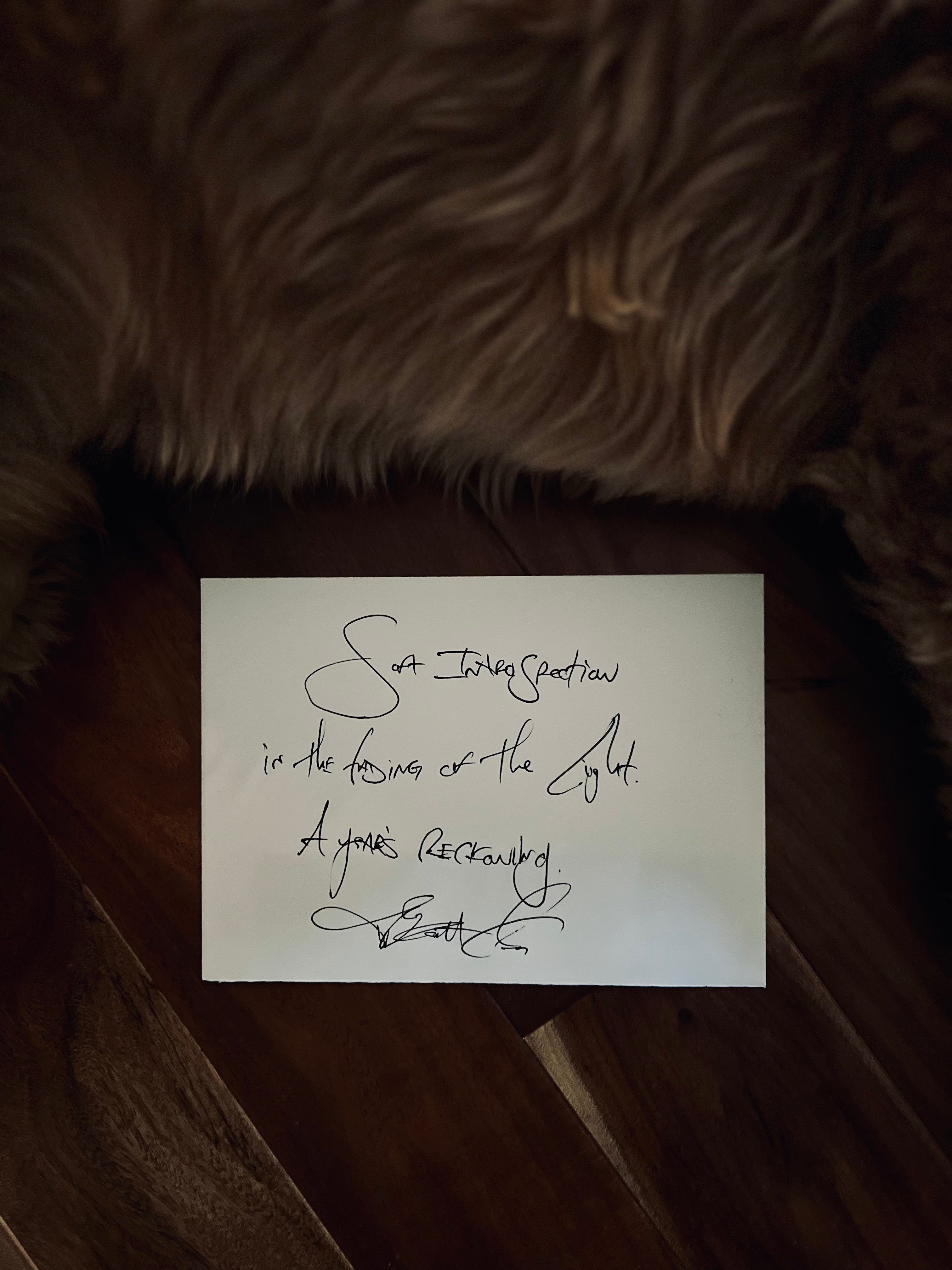 This day, I ask for a gentle reckoning, I ask for a review built around compassion, around grace. I ask us to sit in the empty space the absence of light provides and look back, then look forward. There will be no harsh judgements afforded today, not from one to another, not from one to themselves, only a tender checking in.