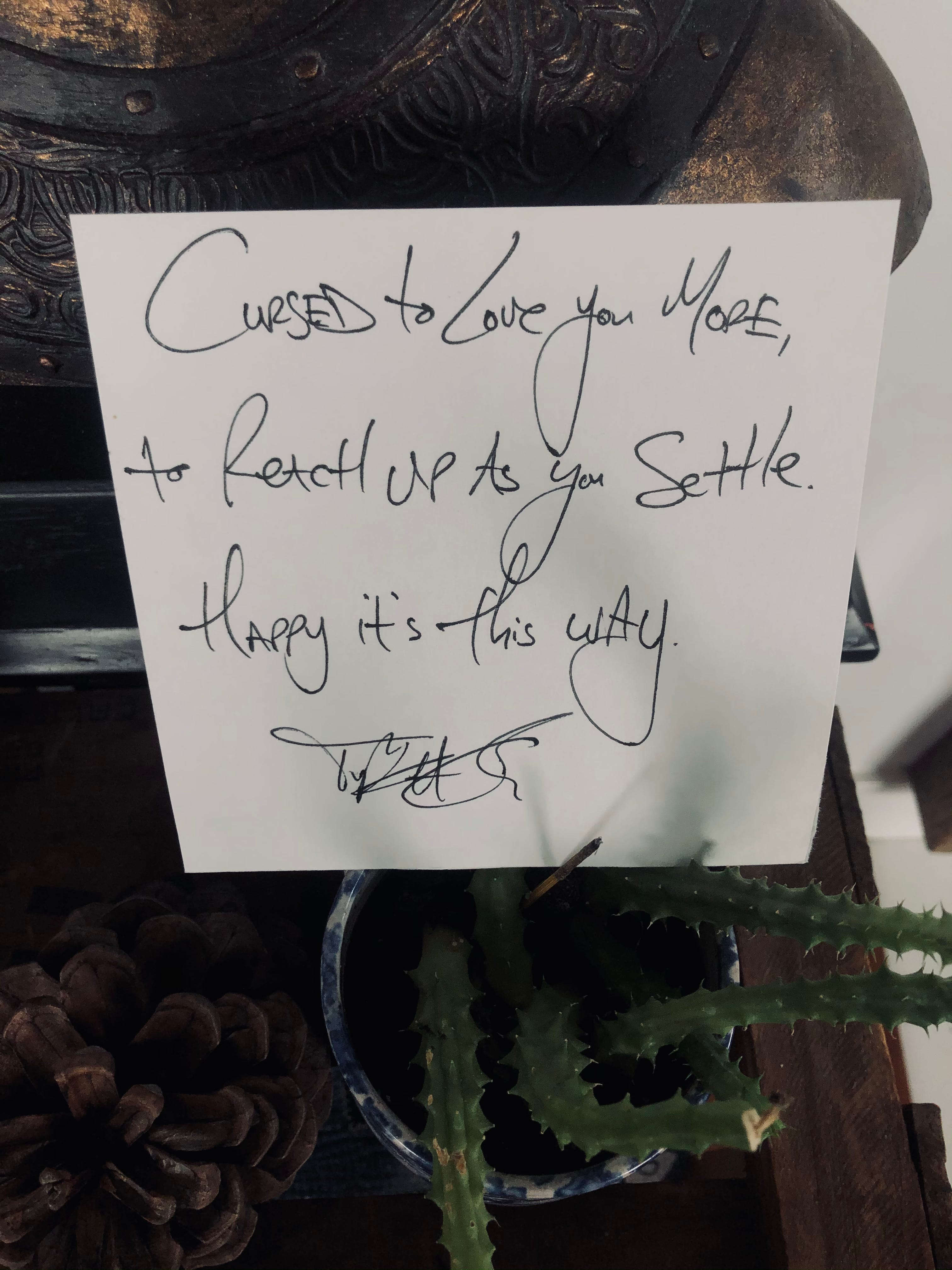 On this day, you were born. Years ago, you stumbled onto a planet that wasn’t ready for the size of your spirit, the weight of your kindness. You burst onto the scene and left change in your wake, everywhere you went gardens grew like magic, like you’d seeds on the soles of your feet, like you alone were responsible for all things green in this world, all things good. Happy Birthday, my wife, my best-friend, my soul. Happy Birthday and thank you, for letting me love you, for letting me reach and reach to try to deserve you, even though we both know I never will. Thank you for changing my life, saving it, and setting me free. Thank you, and I love you, you and no other.