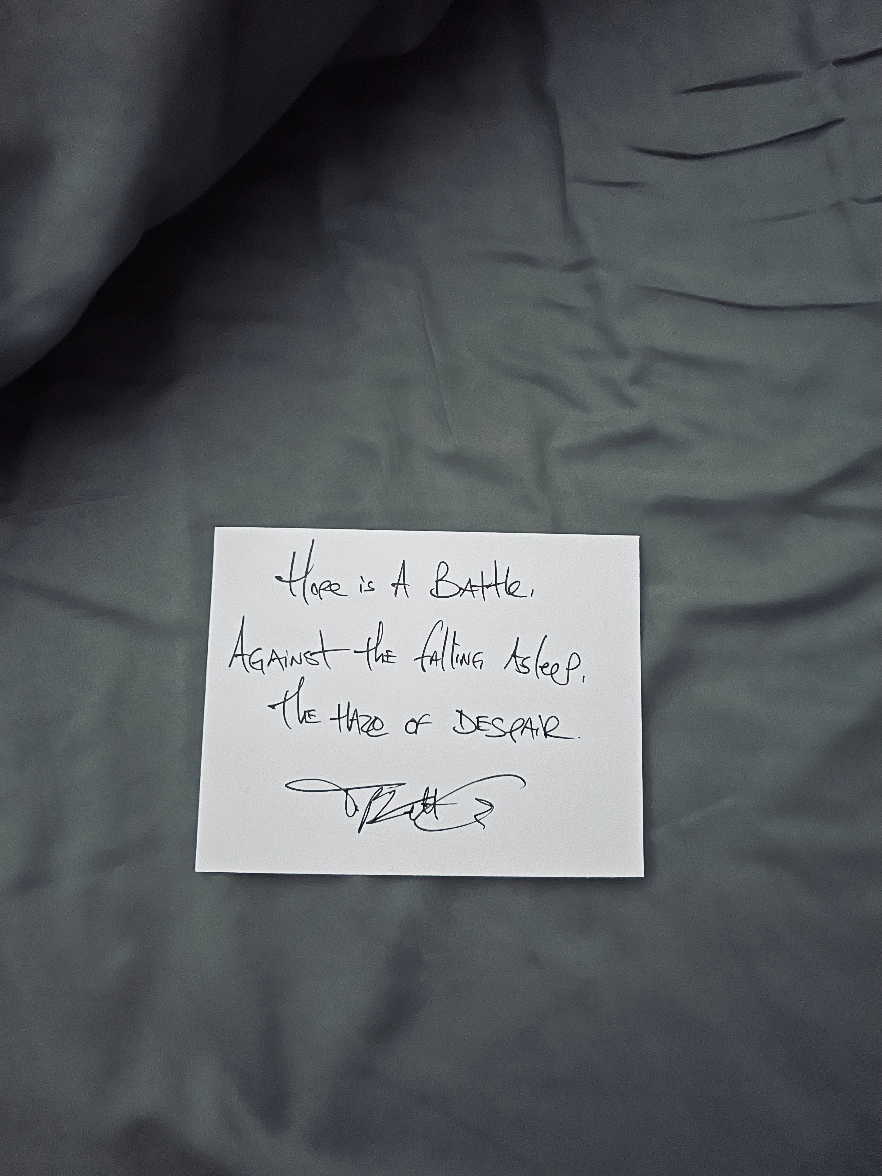 Now, when people come to me and suggest I try positivity, as gently as I can, I tell them to fuck off. Sometimes, things are hard, sometimes life sucks, sometimes we feel like there isn’t a light at the end of the tunnel, and it’s then we need someone to sit with us in the dark, and just tell us they’ll help us fight. That’s it, nothing more. That’s what I’m saying to you today, should you find yourself in that tunnel, I’m here, I’m beside you, and I’ll fight right by your side. If you’re not there, and light is all around you, if hope doesn’t feel like a battle right now, find someone that doesn’t agree, and instead of trying to fix them, trying to turn it around and offer some false promise, just tell them you’re there, always. Tell them Hope is a battle, and they won’t fight alone.