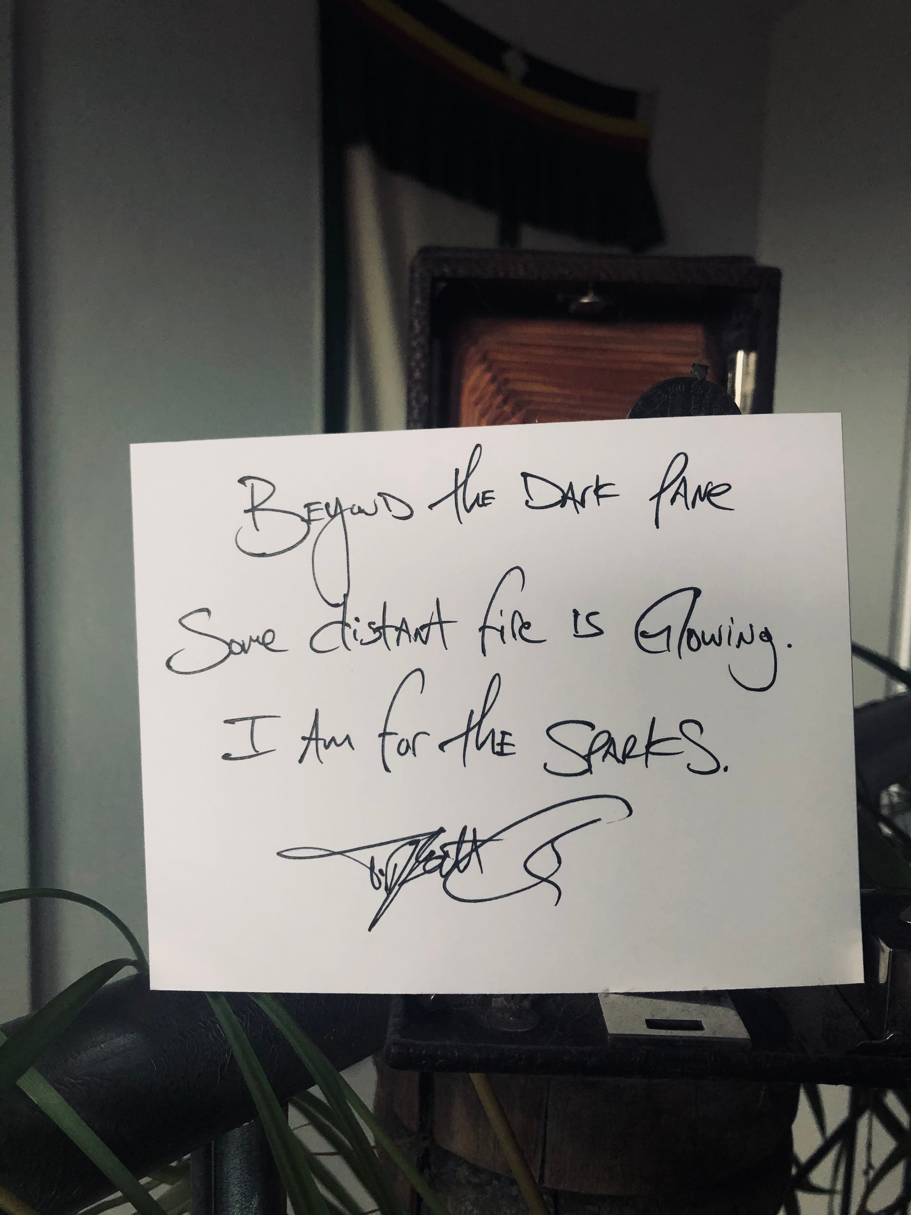 Me, I am for the sparks. I am for the torch waving in all that nothing. I am for the shout into the emptiness.