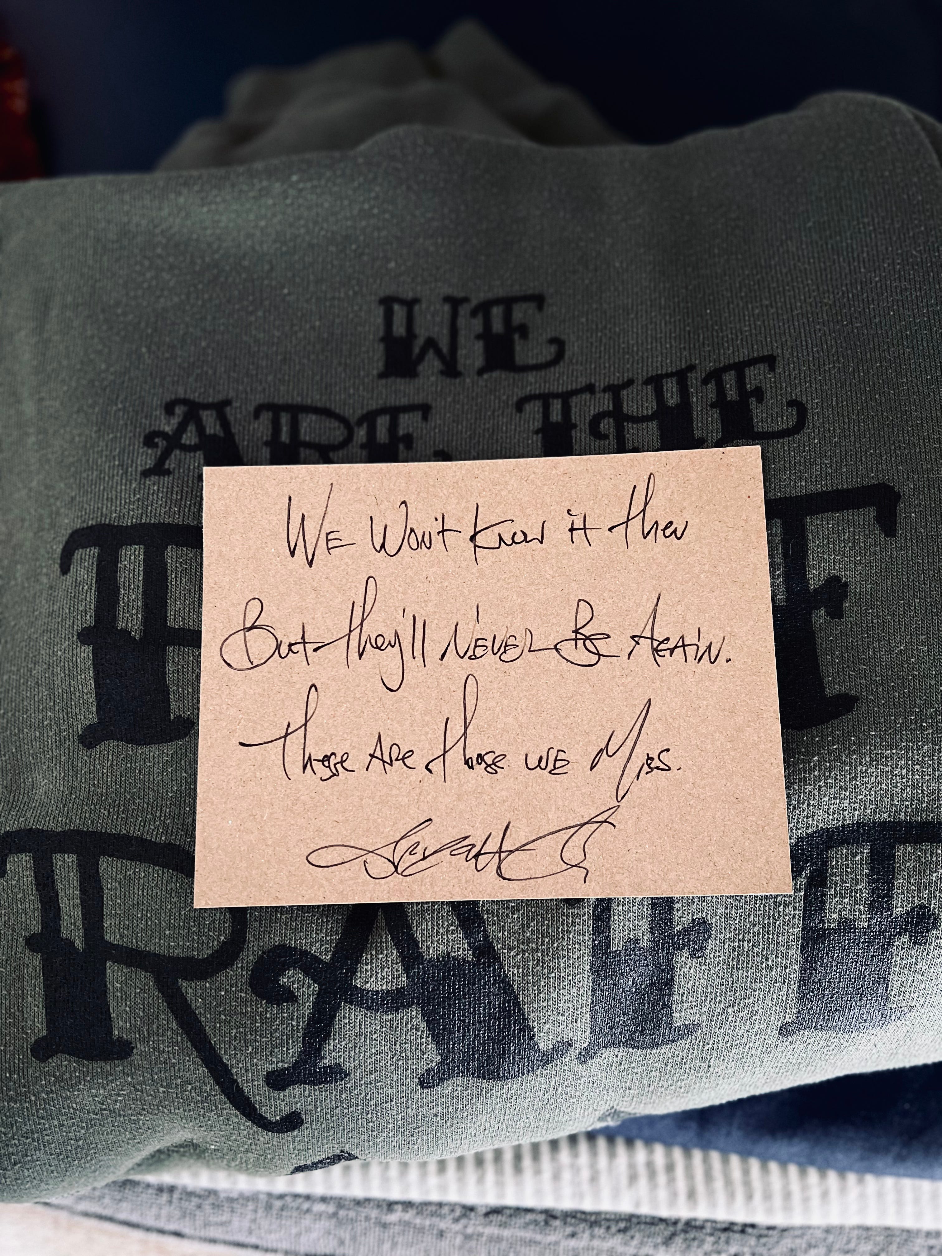 These are the scars we look at at remember the surprise of their infliction. We remember not knowing then, that they’d be a last at all. These are the final hugs we give out, never knowing they will be final. These are the Christmas mornings that once carried such magic and mystery, the sprint up the stairs of our childhood homes and the glance back that highlights the very last time it all felt that way. This is the glow we cannot ever quite reproduce, but still we try.