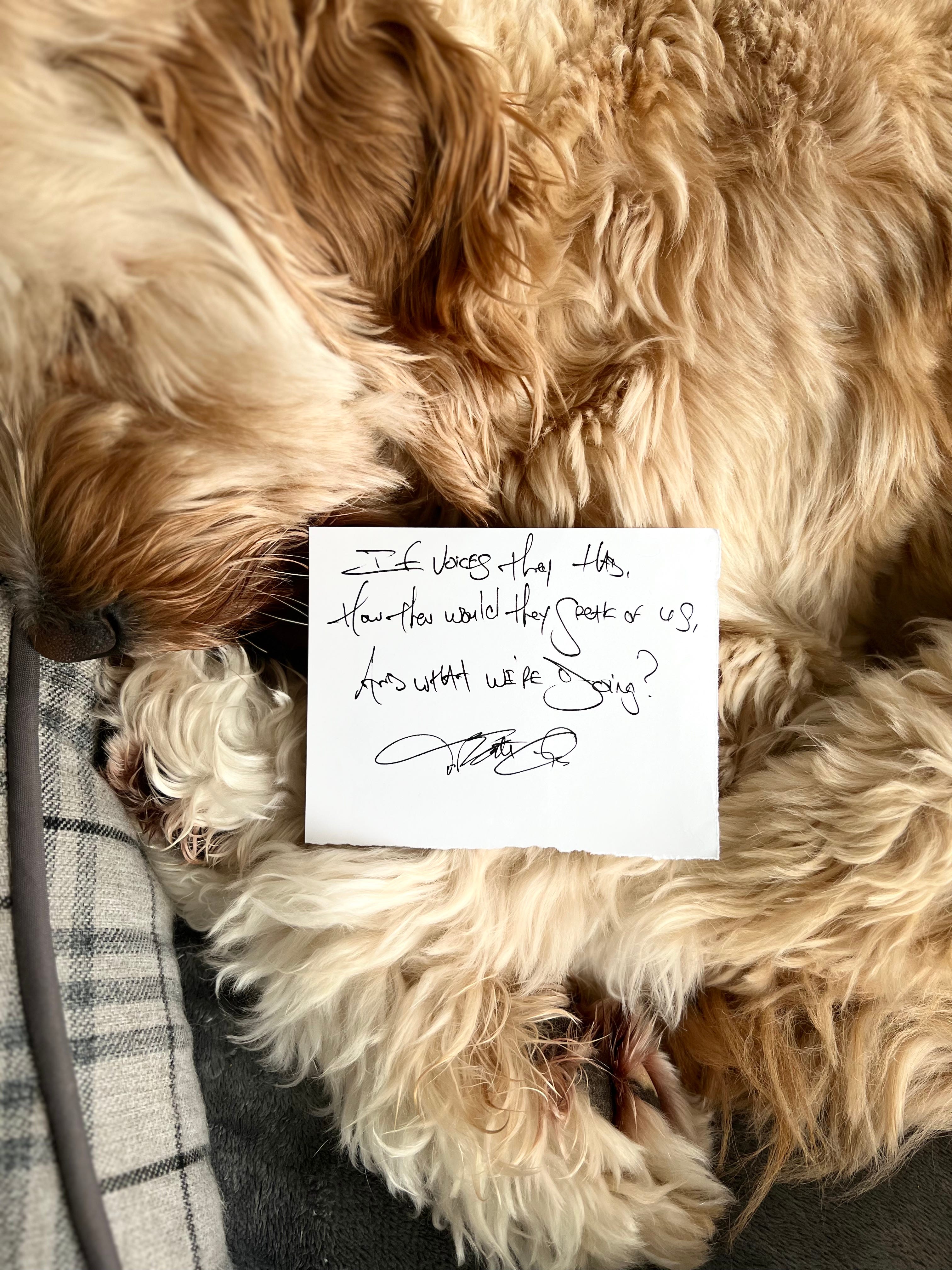 I know they speak of us, I know they watch, I only wish I could speak back, only wish I could try my best to explain. We are broken, I would say in my softest voice, but some of us are trying, some of us still care. I wish I could, for a moment or two, know the notes of their songs, the timbre of their understanding, and I wish I could tell them we are sorry, that I speak for those who will not speak, that I speak for those who don’t even believe what I believe, when I say that we are so very sorry for what we have done, for how we’ve lost our way. I am sorry, over and over I would tweet or chirp, bark, growl, purr, or hiss. I am sorry, and I am trying to help.