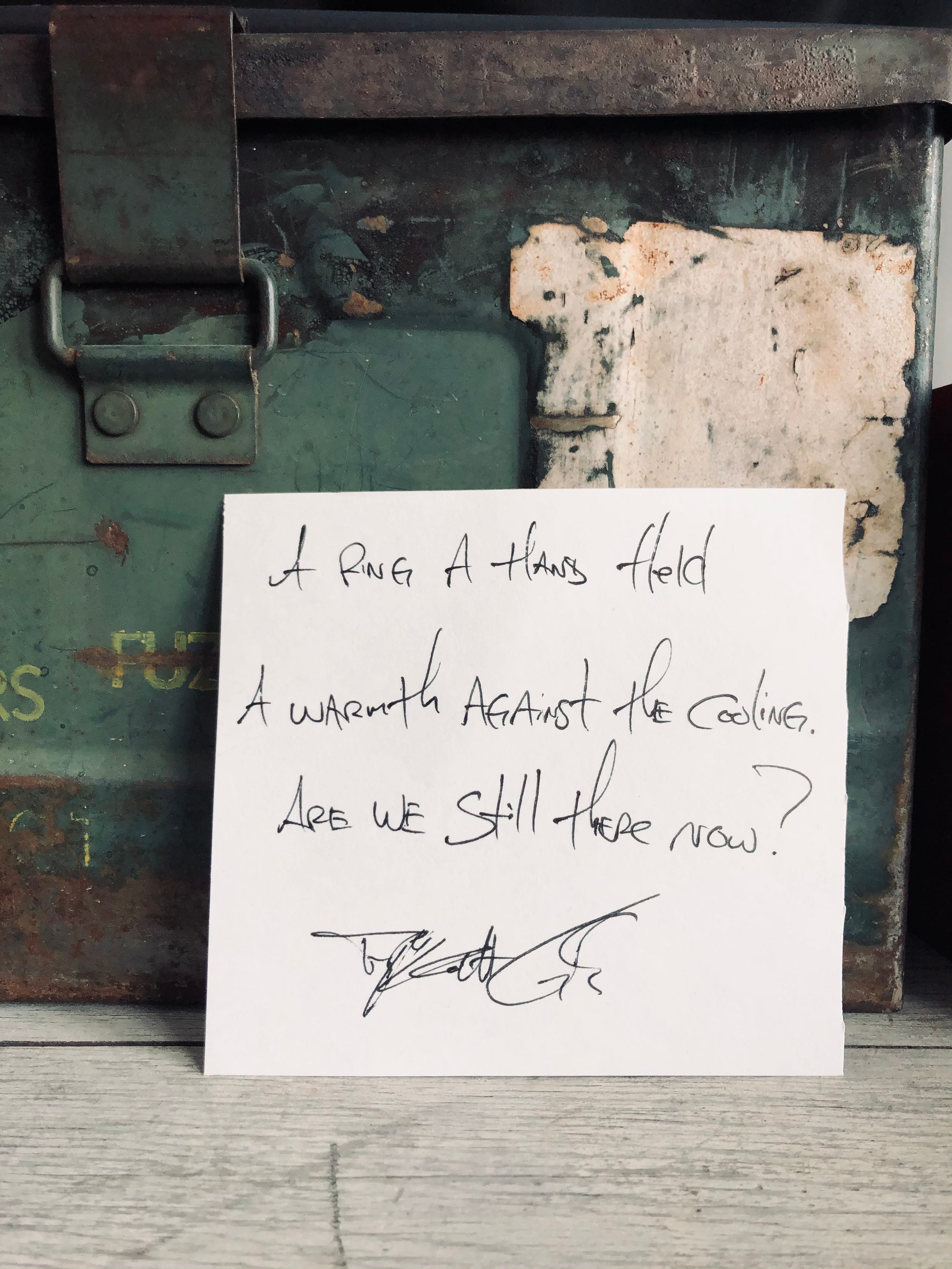 Been thinking about symbols lately, the ones we assign value to, the ones we decide hold power. Rings, necklaces, tattoos, crosses, all the talismans we let into our lives and call them representative. Somehow, those we deem most special, indispensable even, can transport us to a time and place far from where we stand. When I look at the ring I wear now, when I look at her hand and the rings on the fingers, I am there, feeling warmth against the storms that were coming. For a brief moment, I am there, and it’s hard opening my eyes and realizing it’s not true. What symbols do You hold dear?