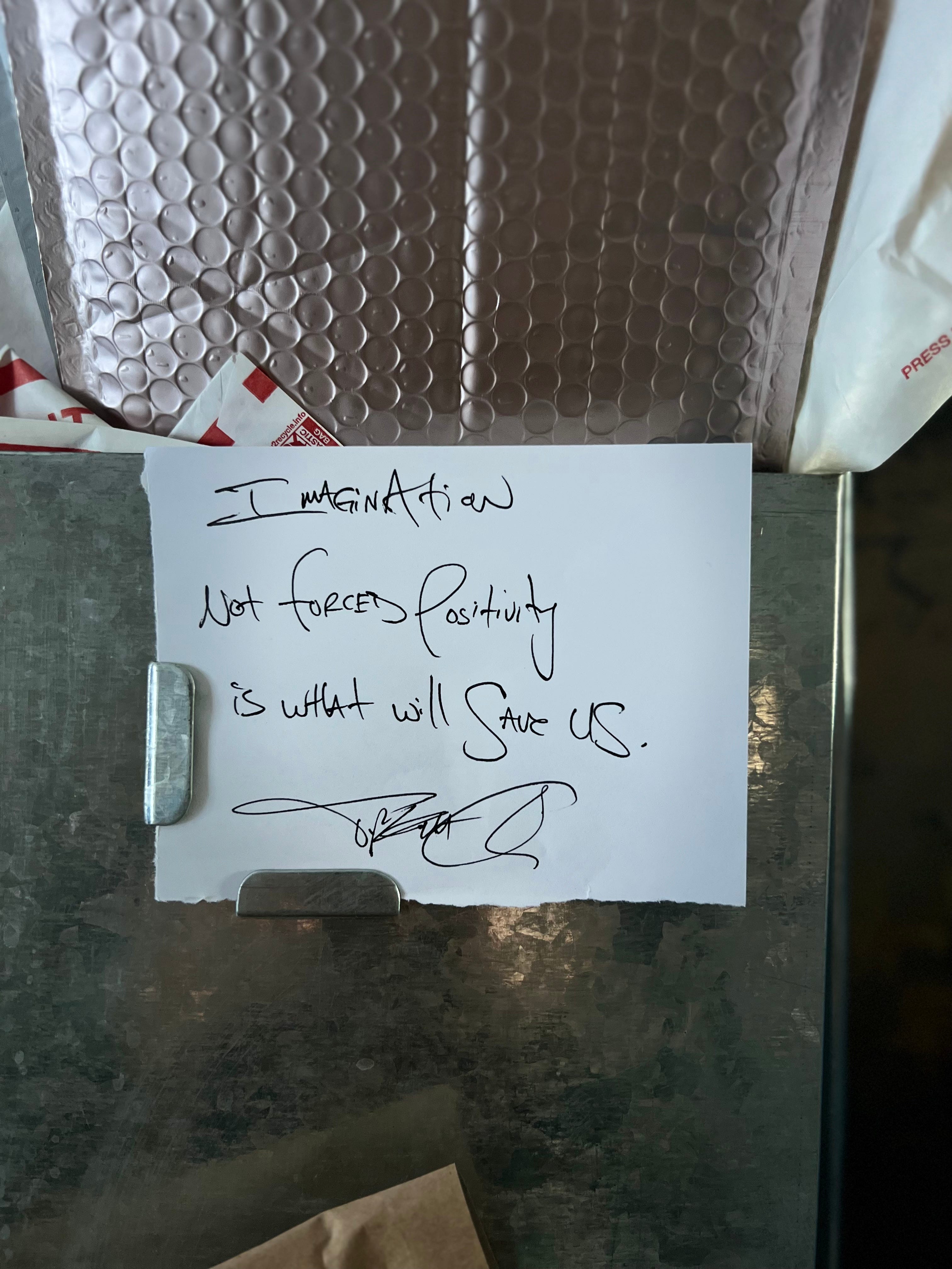 We were dreamers once, tiny hands lifting great big desks to get to the books within. We saw the world and we saw possibility, we saw the endless consequence of choice and chance and luck and love. We can see it again, and it’s not by forcing yourself to be nothing but pleasant, pleasing, and positive, it’s by going backwards, far backwards, to the people we were doodling on our brown-bag book covers we made ourselves on the kitchen tables of our youth. We’re still them, covered by a mountain of nonsense we all felt we had to believe to fit in, we’re still the astronauts, the marine biologists, the stars on the stage, the home run hitters, the world savers, we’ve always been them, we just forgot somewhere along the way.