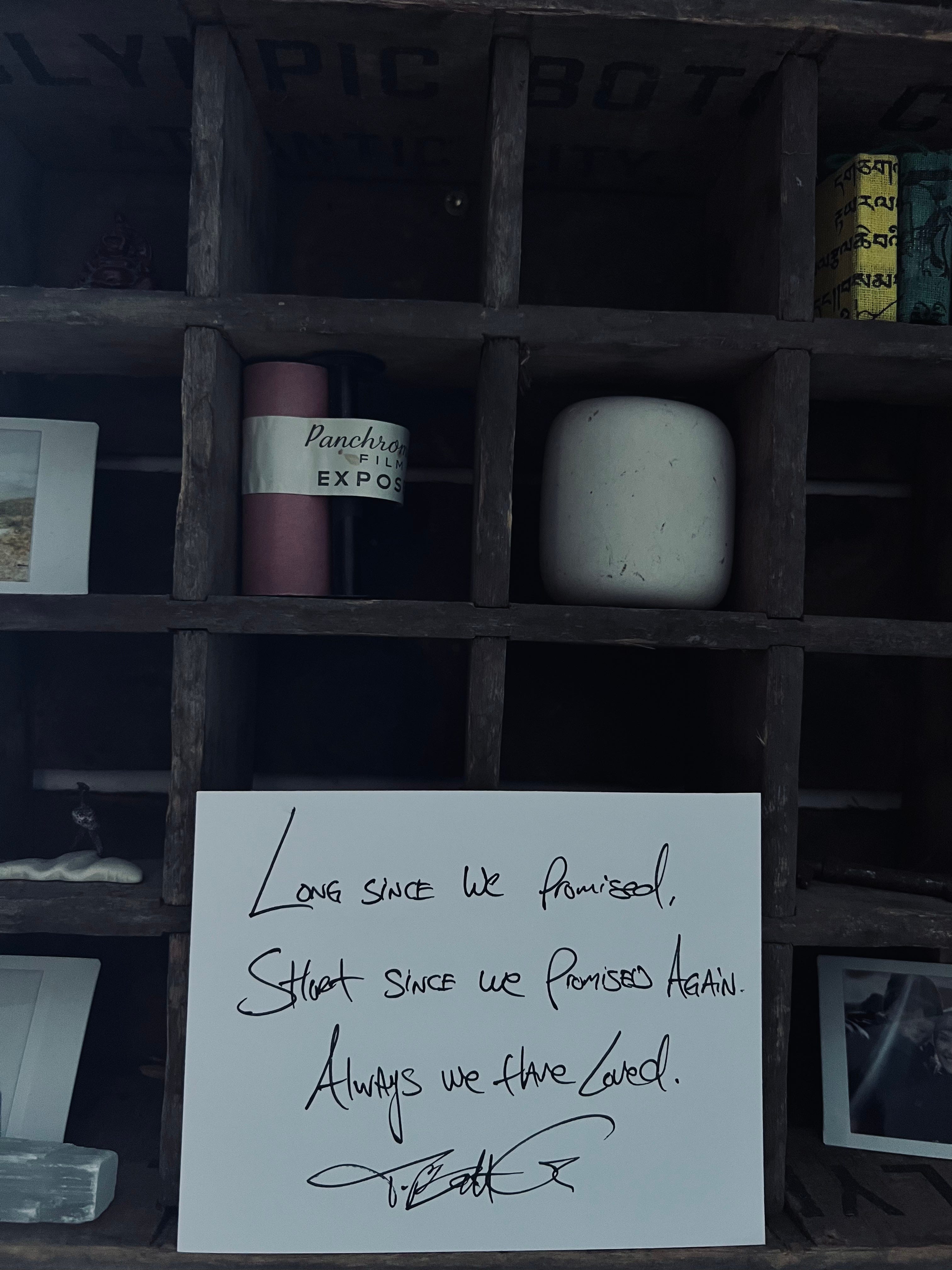 If we knew then, on this bridge in that small sun shower, what was to come, what would we have whispered to one another? How tightly would we have held, would we have left it at all? Would we have walked into that old hotel arm in arm, hands still fastened together, and declared it home? Would we have stayed, told ourselves we would not move until the storm has passed, the real storm building quietly over the horizon line, just out of sight? Three years have come, and three have gone, and last night once again, we tied ourselves together. Four times now we’ve said those words, four times we’ve stood and stared into each other and promised, long since the first, short since the last, but always, always we have loved.