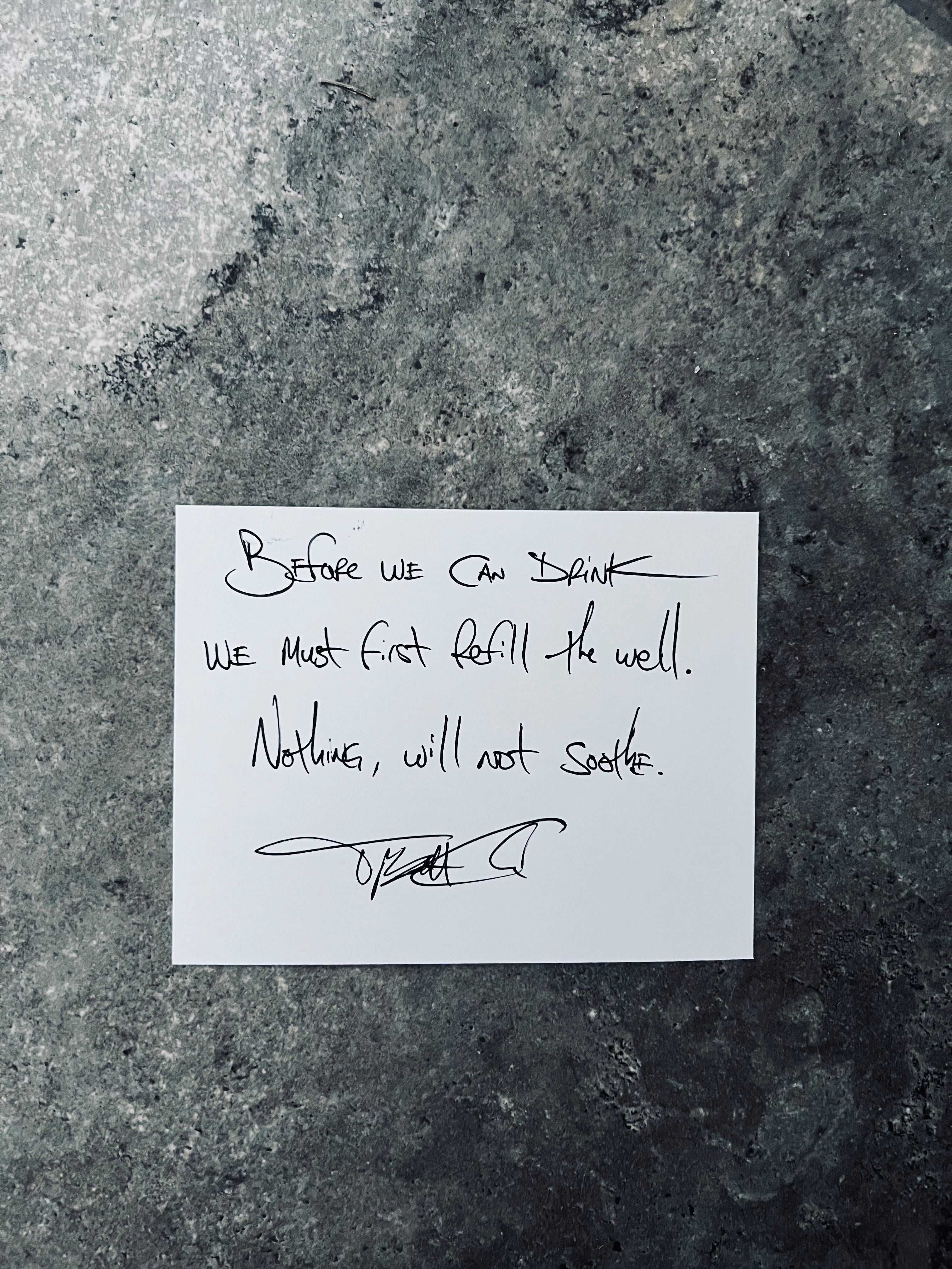 Let’s talk, let’s discuss, let’s find ways to refill our own wells whilst refilling those of everyone else. Maybe that’s the way forward, maybe it’s only together can we do so, I don’t know, but I’m willing to try. I am tired of seeing so many that I love and cherish be so worn down and emptied out. I am tired of seeing all your throats so parched, all your skin so dry. Nothing will not soothe, we know this, and yet we keep pushing ourselves until there is nothing left. As we come up on the ending of another year, maybe we need to find new ways, better ways, to make all that nothing turn into something better.