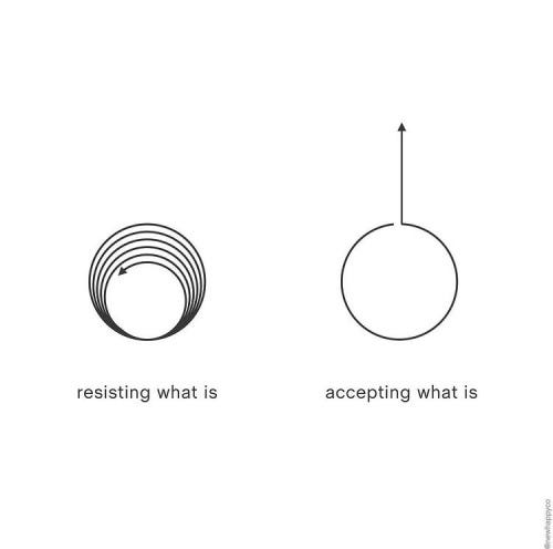 The image shows two circles, one spiraling in on itself, and the other taking a single lap around that spiral, before exiting and moving on. The first says “resisting what is,” whilst the latter says “accepting what is.” But WAIT Tyler, you just said in your little intro that there are always things we can do, change, and influence to feel better about this life we’re living…what gives? Ahh, my friends, here is the rub, and the challenge of this life: Deciding which things we can change, and which we cannot. Which things we shall accept, and which we should rebel against. There’s an idea in Buddhism that there are only two kinds of problems in life, problems we can do something about, and problems that we cannot. For the first, if it can be fixed, why worry? For the second, if there’s nothing we can do, worrying will do no good. The work of this life, is deciding which is which, and I think that the only practice we can reliably do, is accepting more, and resisting less.