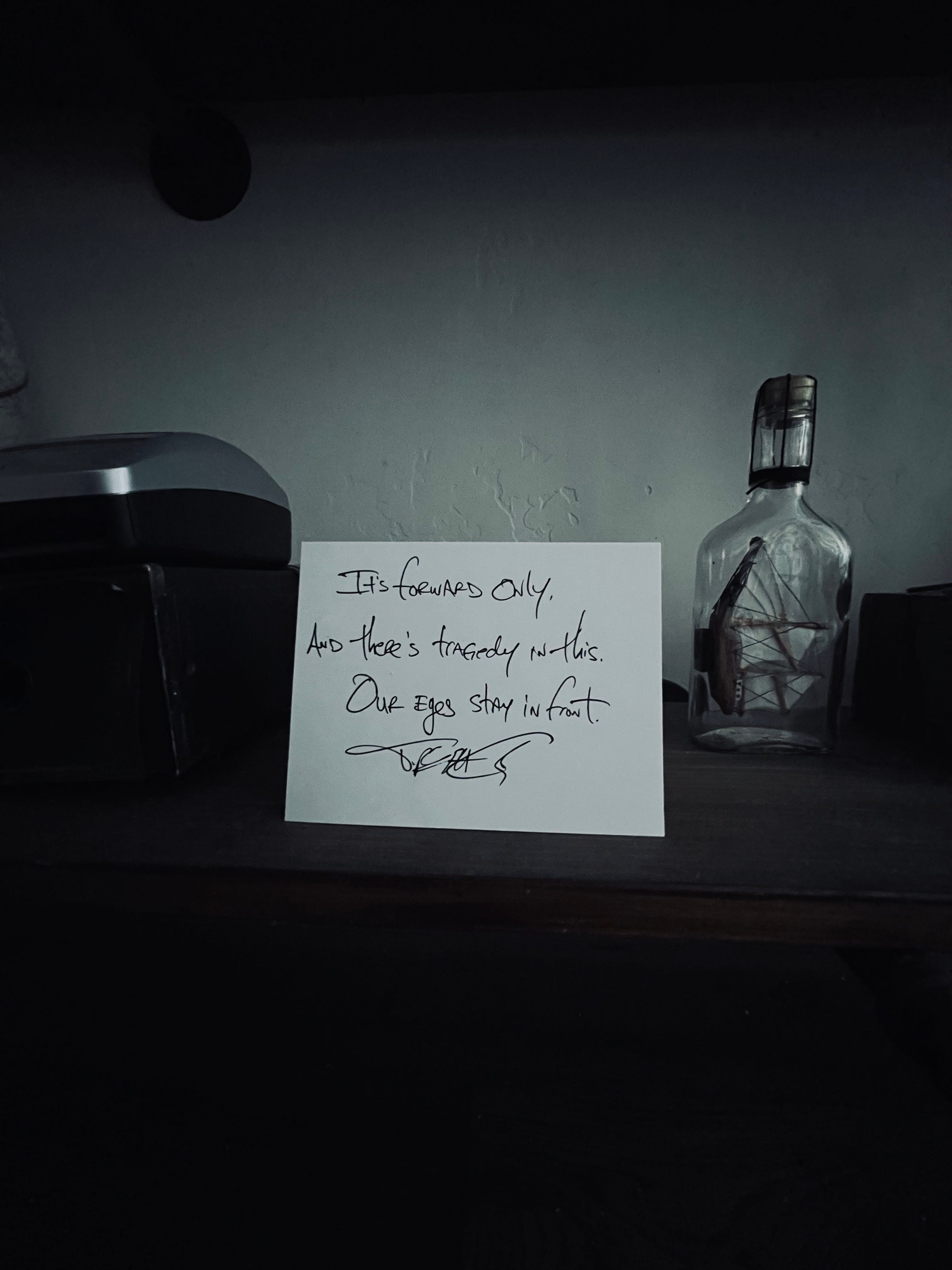 Who we were does not always dictate who we will be, but there are shaping forces that only know that shaping. We are molded and and formed by all we endure, by the way we rise from what tries to keep us down. We are who we are from those that walk into our lives, but even more, those that walk out, those that disappear over that horizon hill and maybe never come back again. There is some sliver of tragedy in the way our eyes point, the direction they face. It’s forwards, our eyes stay in front, and we can never go back again.