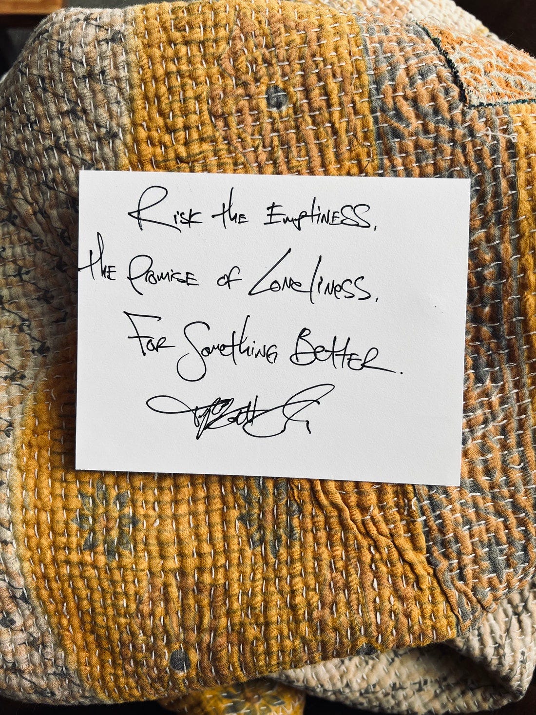 What I propose is that we risk it. I propose that we make it a standard practice to have a little bit more self-worth, and a little bit more daring, and we become comfortable being uncomfortable. We risk the emptiness, and the promise of loneliness, because here’s the rub, you WILL be lonely from time to time if you refuse to settle. You’ll be Alone from time to time, but, and this is a glorious but, it is worth it. There is something better out there, for each of us, we’ve just gotten so good at ignoring it and convincing ourselves we’re not worthy of it, that we stop, we stagnate, and we let all the reasons, both real and imaginary, take over. We throw our hands up in defeat, and we then turn back to the warmth of routine, of familiar, of good enough. No more. The night may be dark and full of terrors, as that crazy Red Woman on Game of Thrones said a time or two hundred, but I’m here to say that there is nothing more terrifying than a life spent wallowing in the middle. Risk the emptiness for a life of magic, risk the ‘good enough’ for a life of abundance in joy, in peace, in calm, in hope.