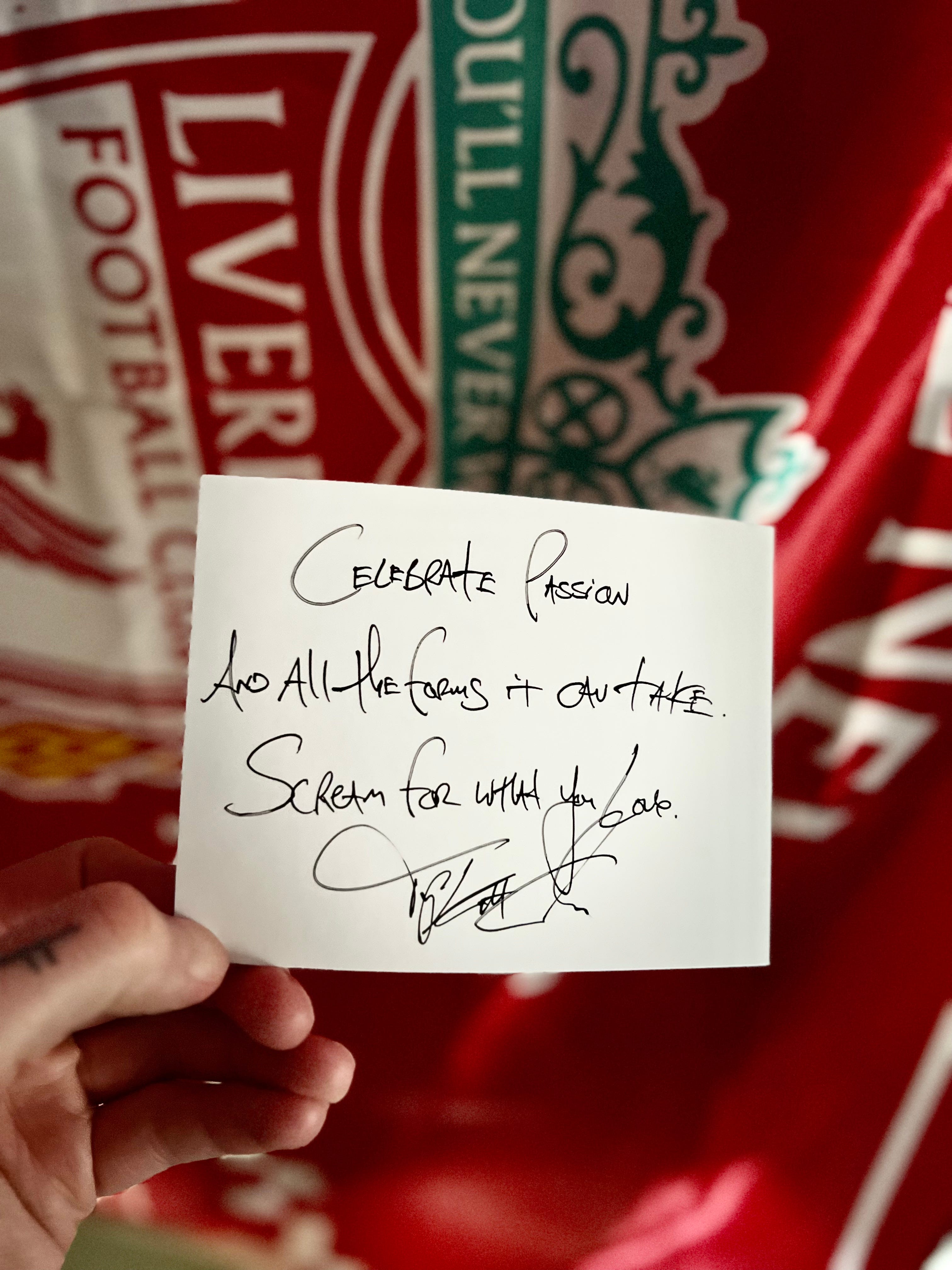 I’m not saying your passion has to present as an undying affection for an English football team, or a burning love of opera music, or for alpacas that like to dance, or anything like that. I’m just saying that in my humblest of opinions, we could all do with a lot more passion in our lives. If that needs to start with something simple, if you all want to jump on board and learn more about why LFC Is just a worthy source, I’m happy as a pig in shit to introduce you to that, but it can be anything, it can be any time, as long as you have it.