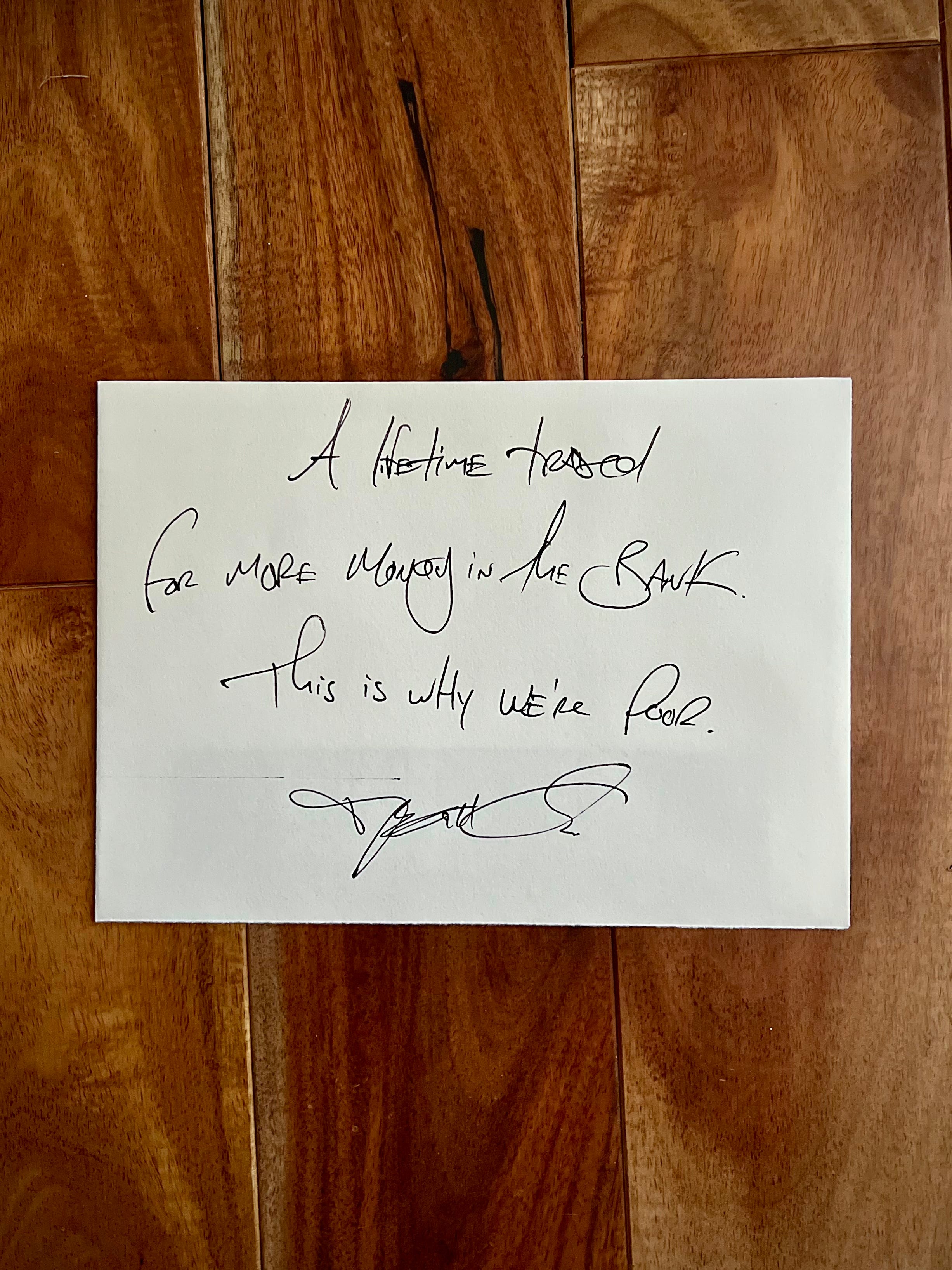 I think a lot of us have felt very poor, for a very long time, and I think we’re maybe all starting to realize it’s never been about the money we were told it was, not really. I think it’s always been more about what we’ve traded to chase it, what we’ve had to swap, and I think we’re realizing we maybe, just maybe, got the raw end of the deal.