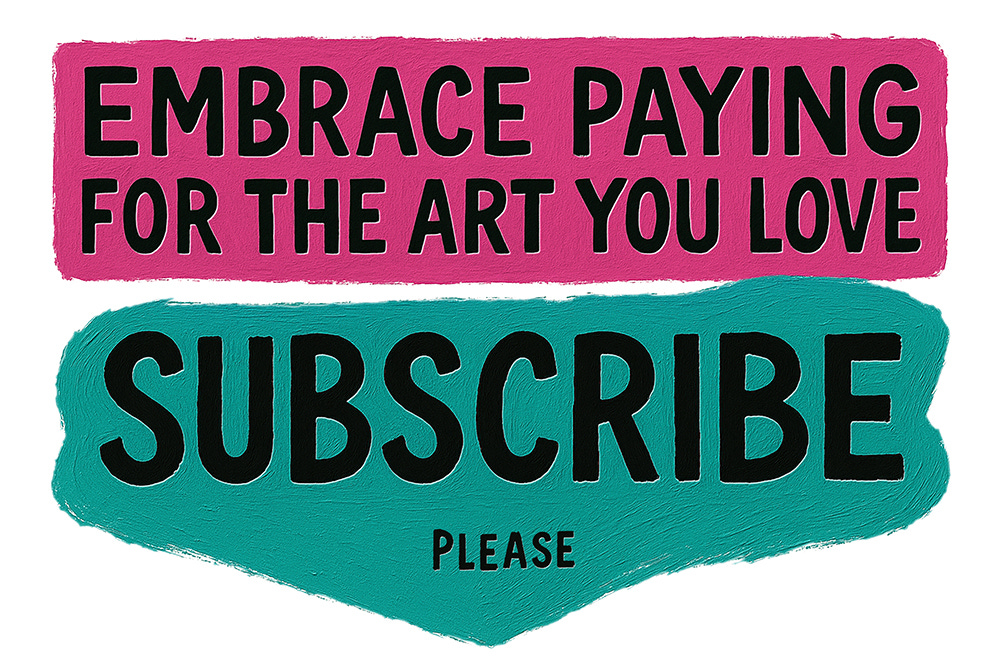 Before we do, a tiny bit of honesty: The amazing kindness and superheroism of our paid subscriber community has made this Matchbook post free to everyone. BUT, I have to be open with you all: I’ve seen a pretty big downtick in paid subscribers over the last few months, and it really does hit hard, as it makes all the time, energy, love, and devotion a lot less sustainable. This place is literally kept alive by our paid community, and it means more than I know how to say. If you’d like to help keep it alive, if you want to keep receiving all this art from me, consider upgrading if you’re able. I love you either way, I hope you know.
