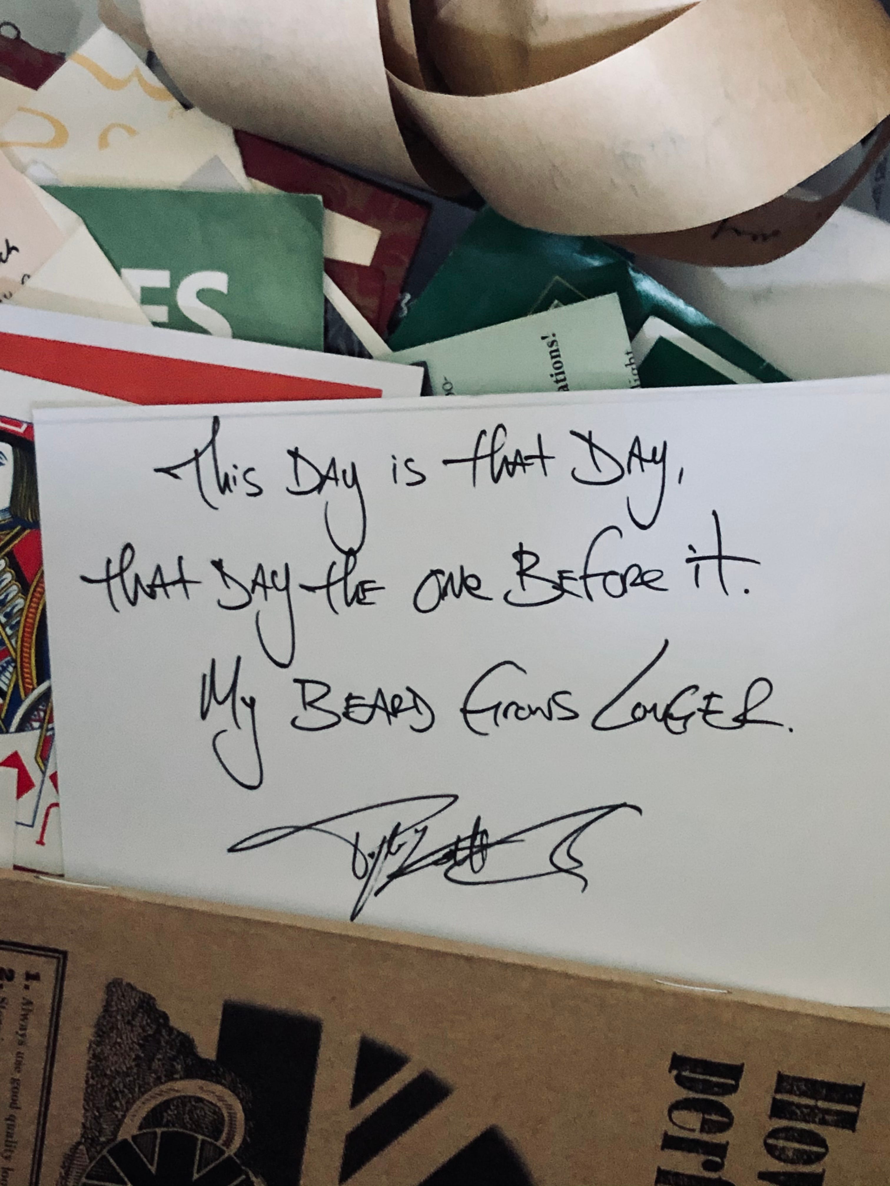 So, wherever you are right now reading this, whatever you’re wearing, whatever anxiety, dread, longing, or ache that may be in your heart, know you are made of such strong stuff, and it’s inarguable now, you’re a warrior poet that is capable of more than you ever thought possible. My beard grows longer, my patience thinner, but dammit, I’m here, and I love you all.