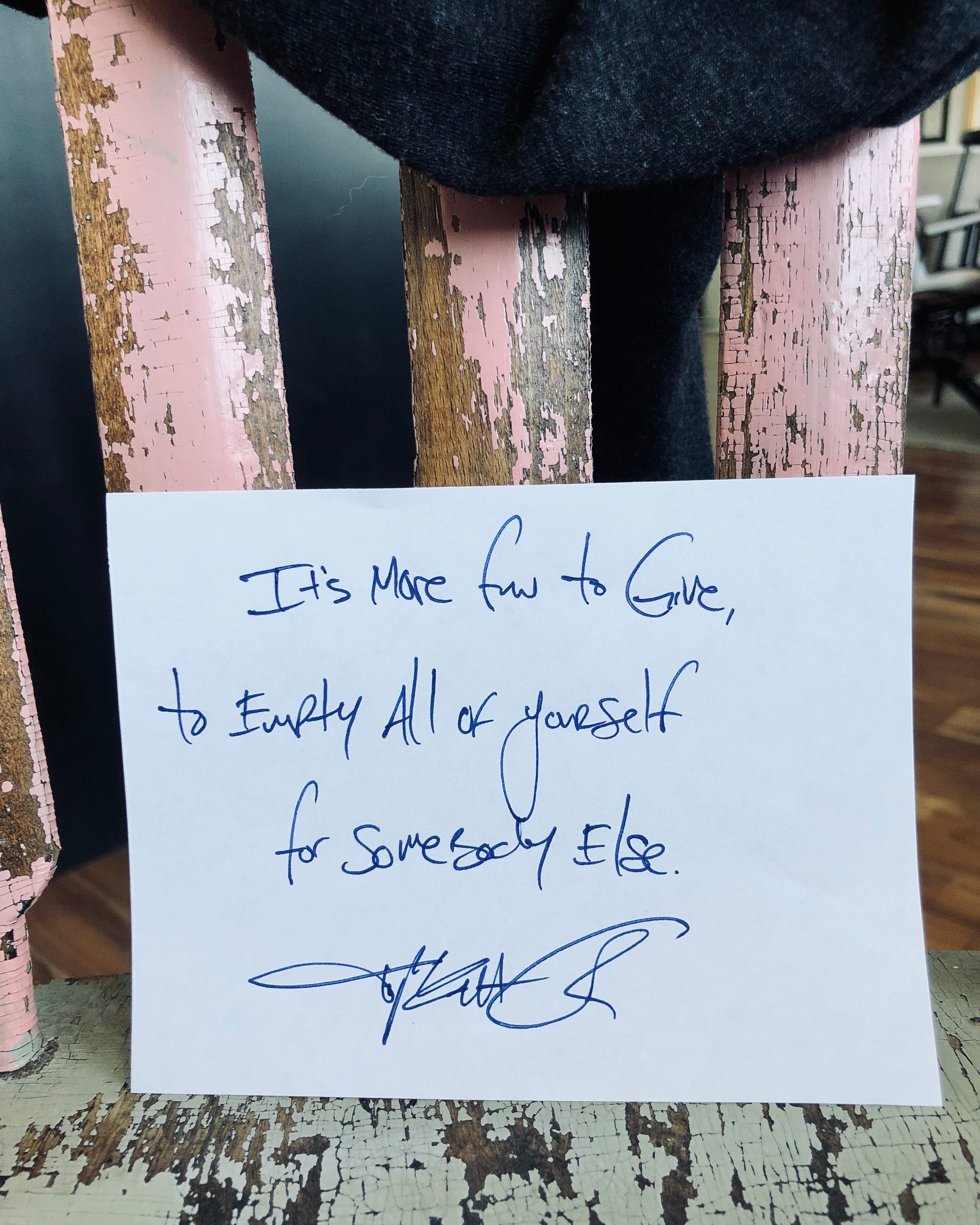 Some things become clichè the more we hear them said, some things get repeated so much they begin to lose meaning, begin to shift into a shell of what they once were. Kindness is not one of these things, and in my experience, it’s one of the very few things on this earth that are absolute guarantees on return. The more we give, the more we empty ourselves out for someone else, oddly, the more we’re filled up in return. The strangest part about this transaction is this: Even KNOWING that it’s true, doesn’t diminish the return. We give, we get. Simple as.