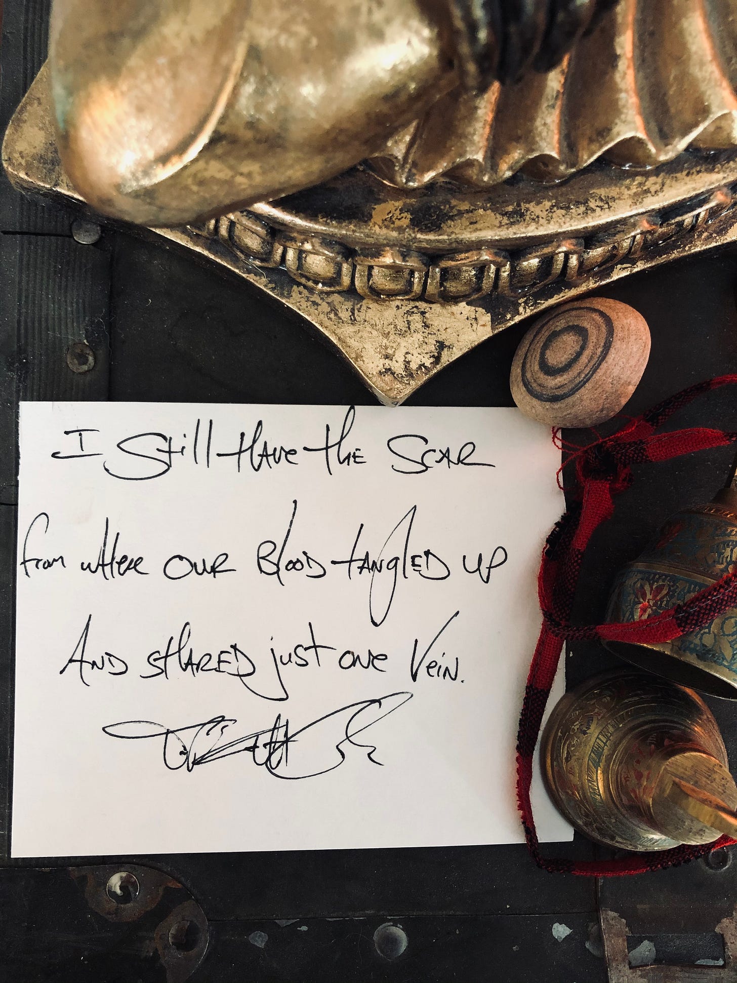 Handfasted, bound, promised and united. Bled together, you and I, tradition some called pagan, called brutal or archaic, but we bled together and I felt it when we did. I feel your heart beating inside my chest now, I feel your breath in my lungs. Can you feel me when excited, when scared, when elated to be alive? One thing, we, blood pumping through one vein, into one heart.