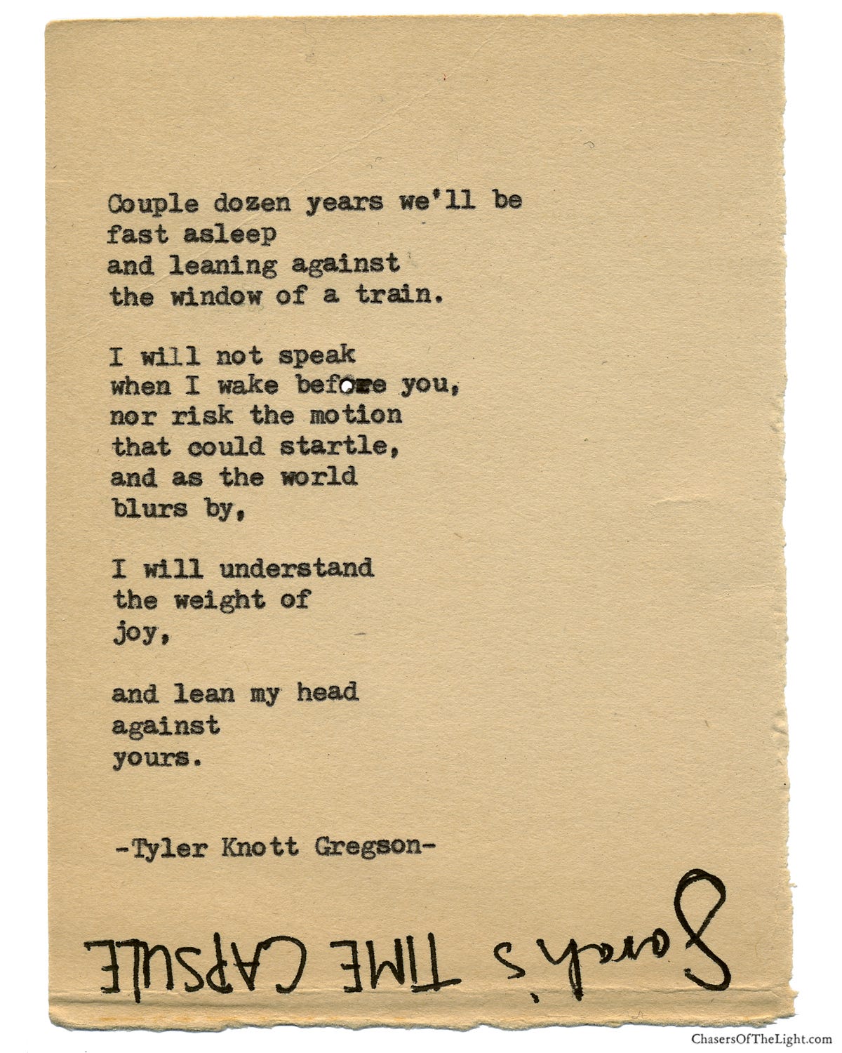 A little Saturday evening poetry to say hello. Why not, after all? This one is about all that is to come, all that we sit and wonder about when bored, when fearful of where we’ve come from, curious about where we’re heading. This one is about something I can feel, I can see, and I know in some distant far-off, is coming. This one is about simple hope for simple times, for tender moments that say more about the quality of a connection between two souls than any grand romantic gesture ever could. This is about staying quiet, staying still, as to not wake the one that feels safe enough with us to close their eyes and drift away, even for a moment.