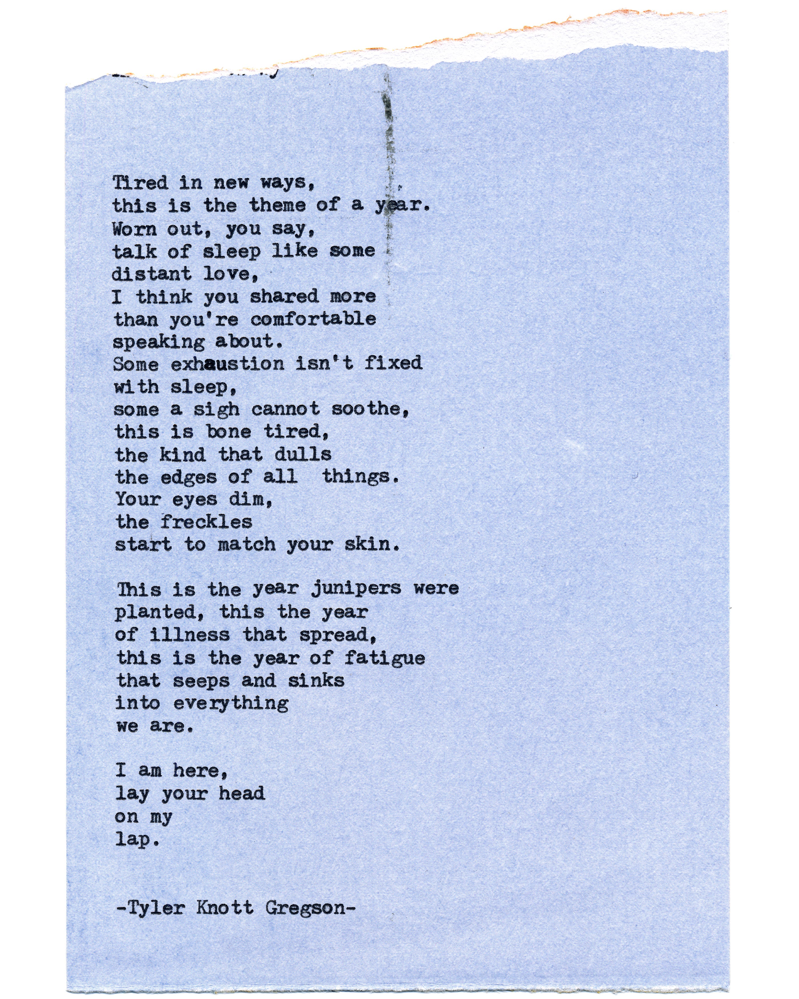 We are tired, are we not? We who have survived the years we’ve endured, we who have stayed, faced the winds, and steadied our shaking? To fight is to work, and to work is to drain, and when the draining is done, we feel the lacks we’ve left behind. This poem, this little something, or nothing, fell out of this exhaustion, the exhaustion that comes from keeping a family afloat through 3 years of global turmoil, through losing all our income as people cut corners to keep their own families short. Some canceled weddings, some couldn’t afford to buy the books, the prints, the custom poetry, some just were doing their very best to hold on.