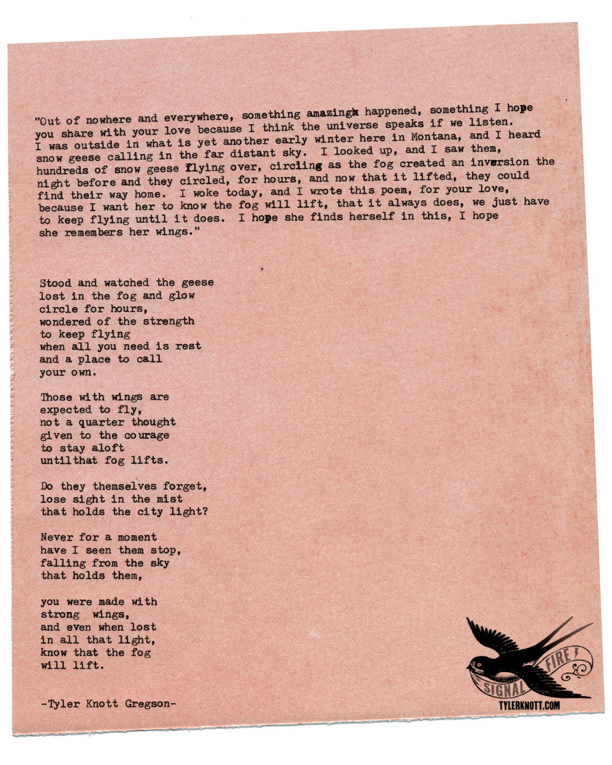 Sometimes, life chooses the stories we tell, the poems we write, and this was one of those instances. The geese, lost in the fog, mirrored the story I was told and asked to turn into poetry, and I couldn’t write it fast enough.