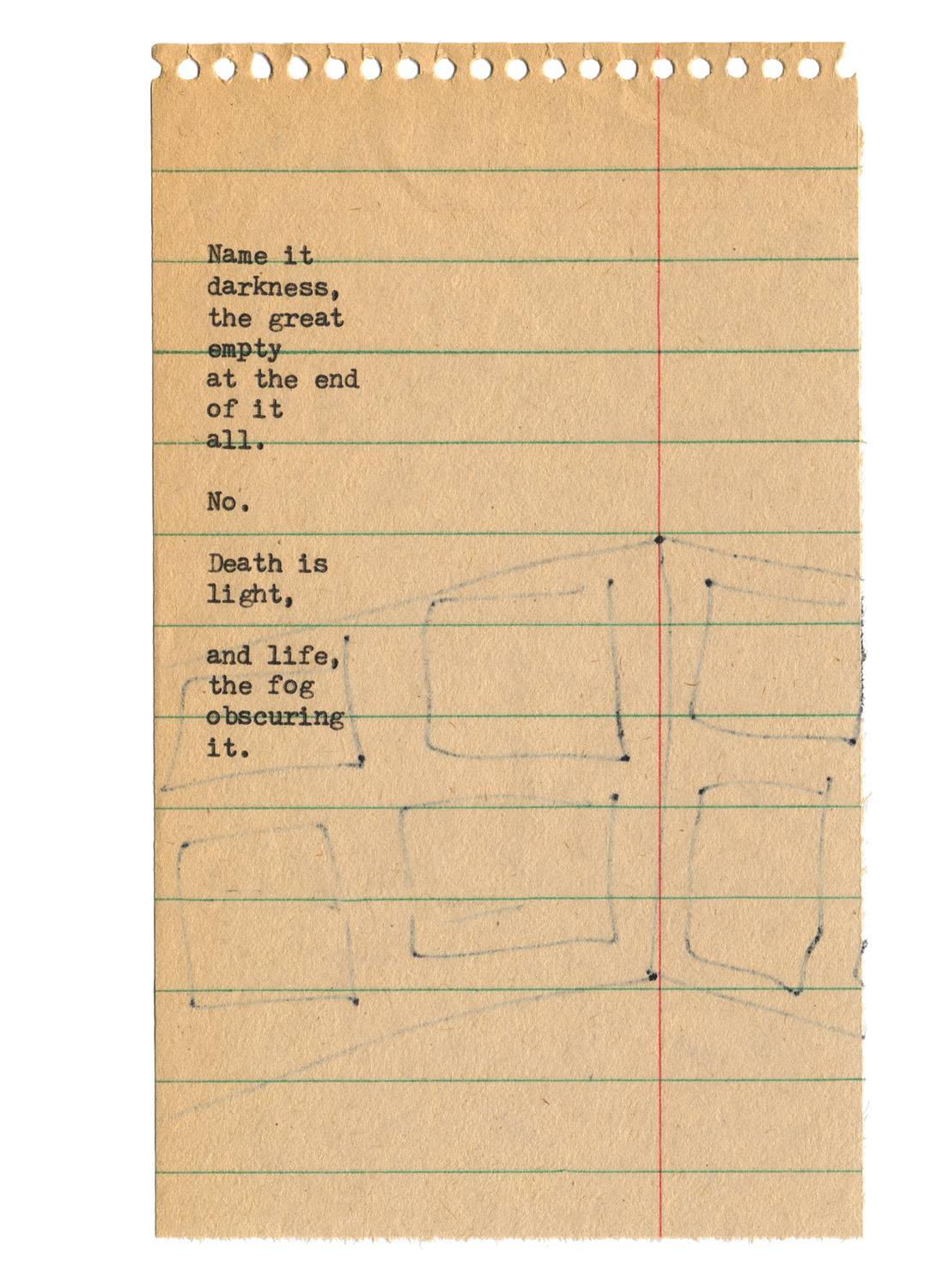 I know now, and my dreams have taught me, that life is the fog and death is not the sea, not the darkness, not the empty below us as we sail. Death is the light above it all, the velvet glow that calls to us as we rise and fall on the waves of our experience.