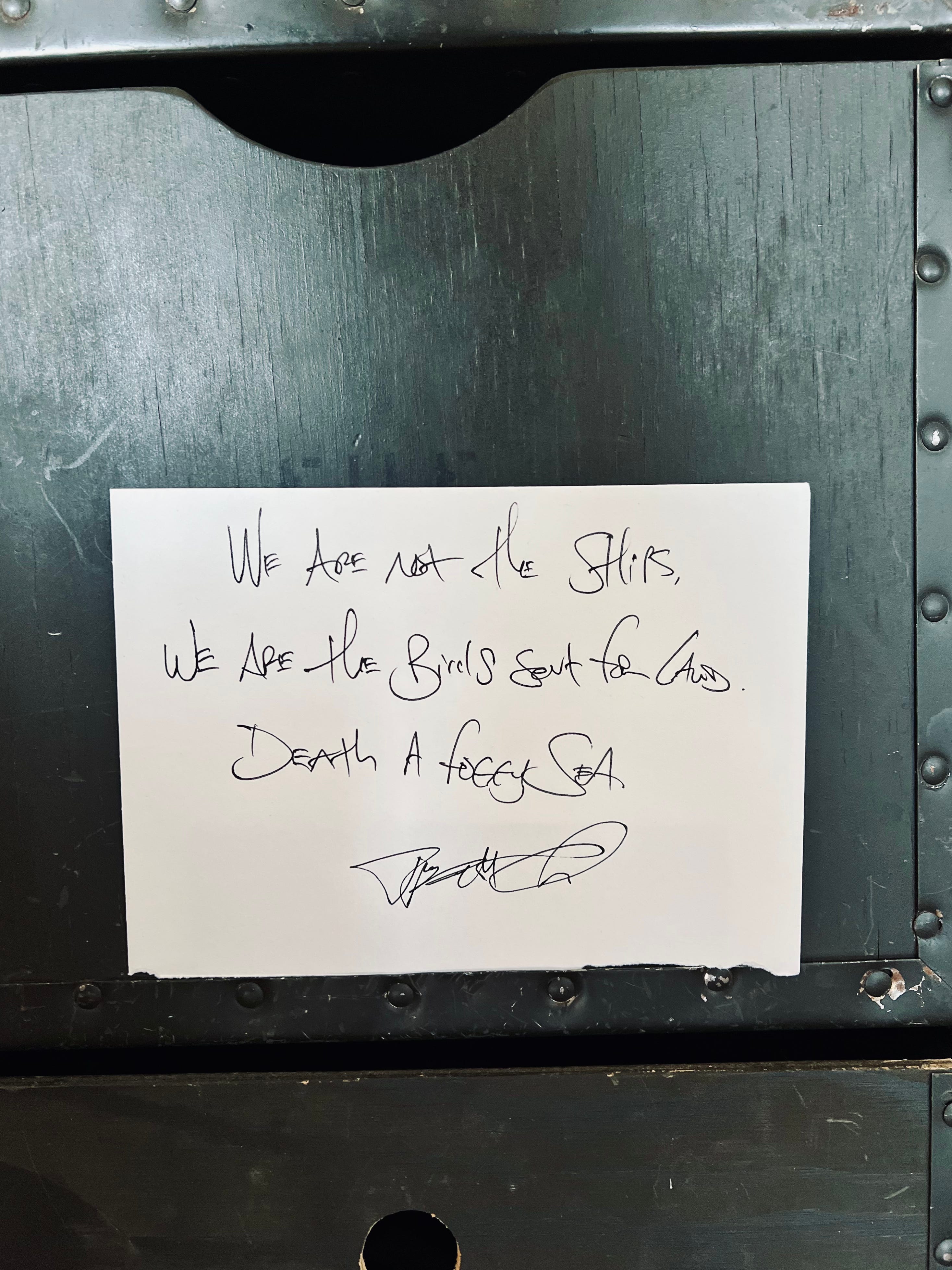 There is no end, not here. There is no finality to the fog on that ocean, to the soaring we were made for. We will fly away from these ships we knew, we will watch as they become refuge for some other life, as we settle onto sea floors and become home to all that swims or crawls, as we bounce songs back to the whales that sang them.