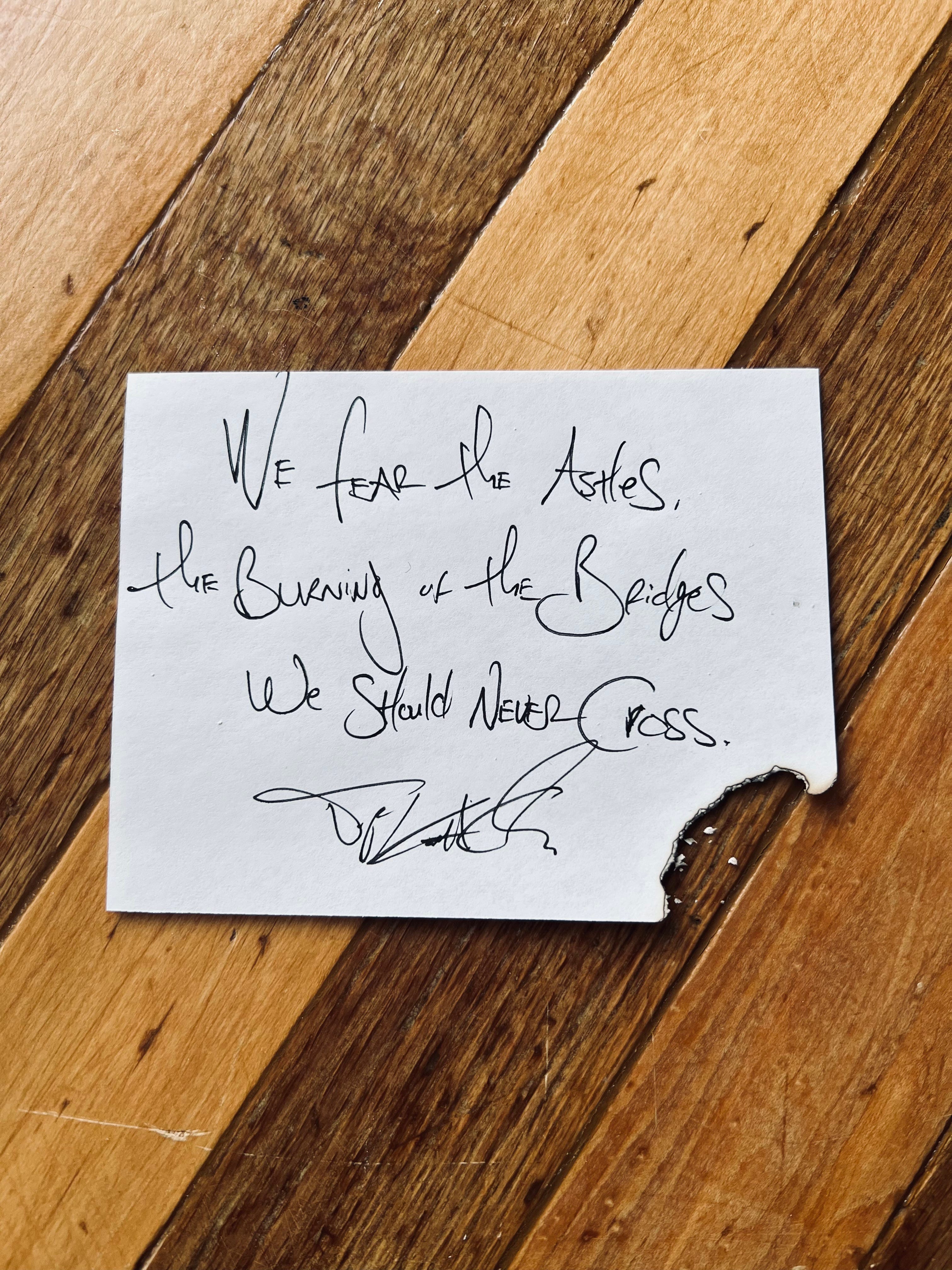 Somehow, we’re all part of a world that is prizing dishonesty over honesty, unkindness over compassion, divide over unity, and all of us on the right side of history, are more afraid of burnt bridges, of the ashes that come when we set fire to them, despite the fact that these bridges we’re burning are those we should have never crossed in the first place.