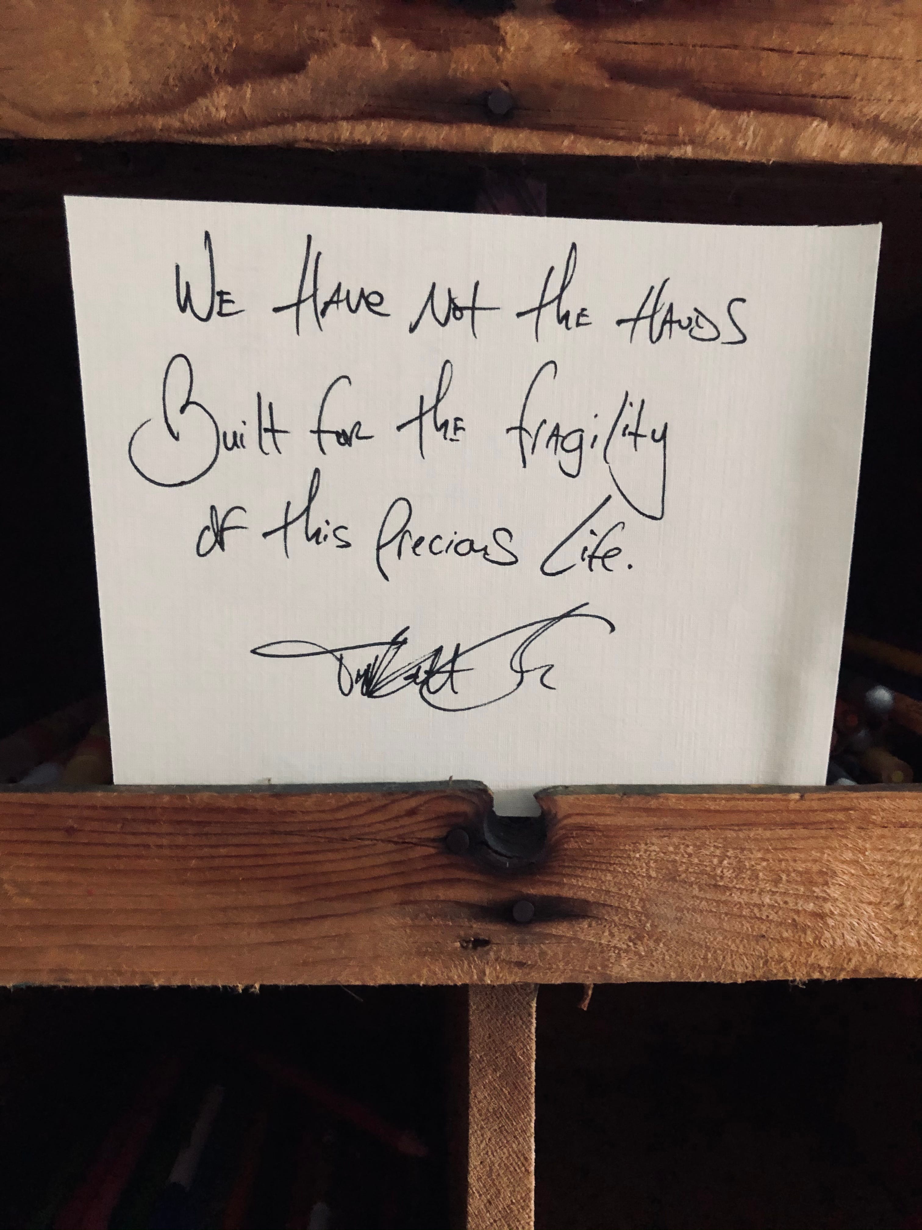 This place, this fragile singing place. This life, this haunted, humming, exquisitely aching life. We’re not built properly to cradle this like some infant thing, these hands too rough, this patience too thin. Try, always we try, but there’s fragility to the beating heart of our world, there’s glasslike thinness to the life we live. A moment, it begins, fumbling hands for found love, a moment later, it ends, wrinkled palms to the sky. From softness to calloused, we are lost in the transformation, wondering all the while if we were ever gentle enough to hold this whisper, this promise.