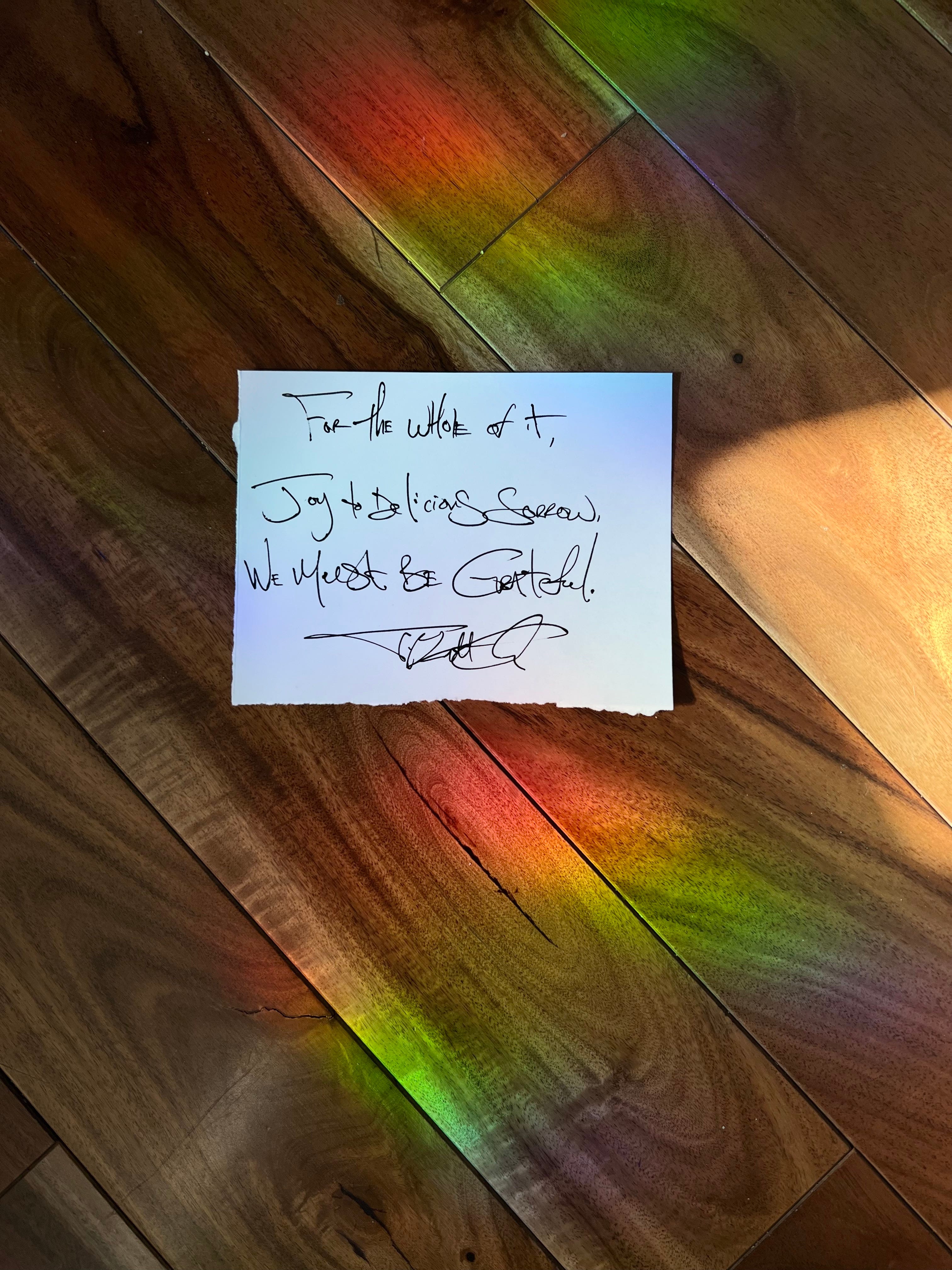 For the whole of it, I ask you with pleading lips still sleepy from conversations over tables shared, the great wide entirety, feel grateful.