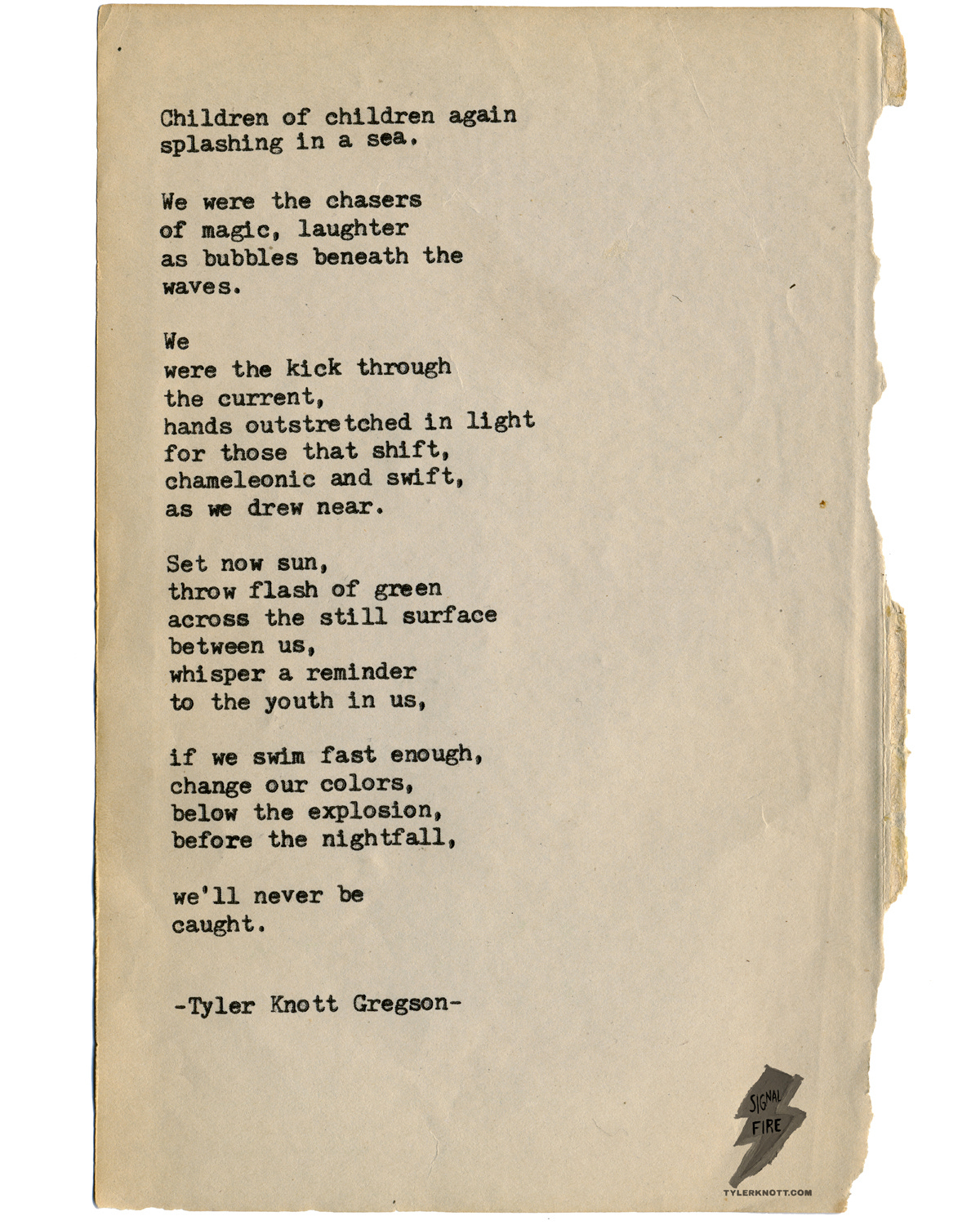 “Children of children again, splashing in the sea.”