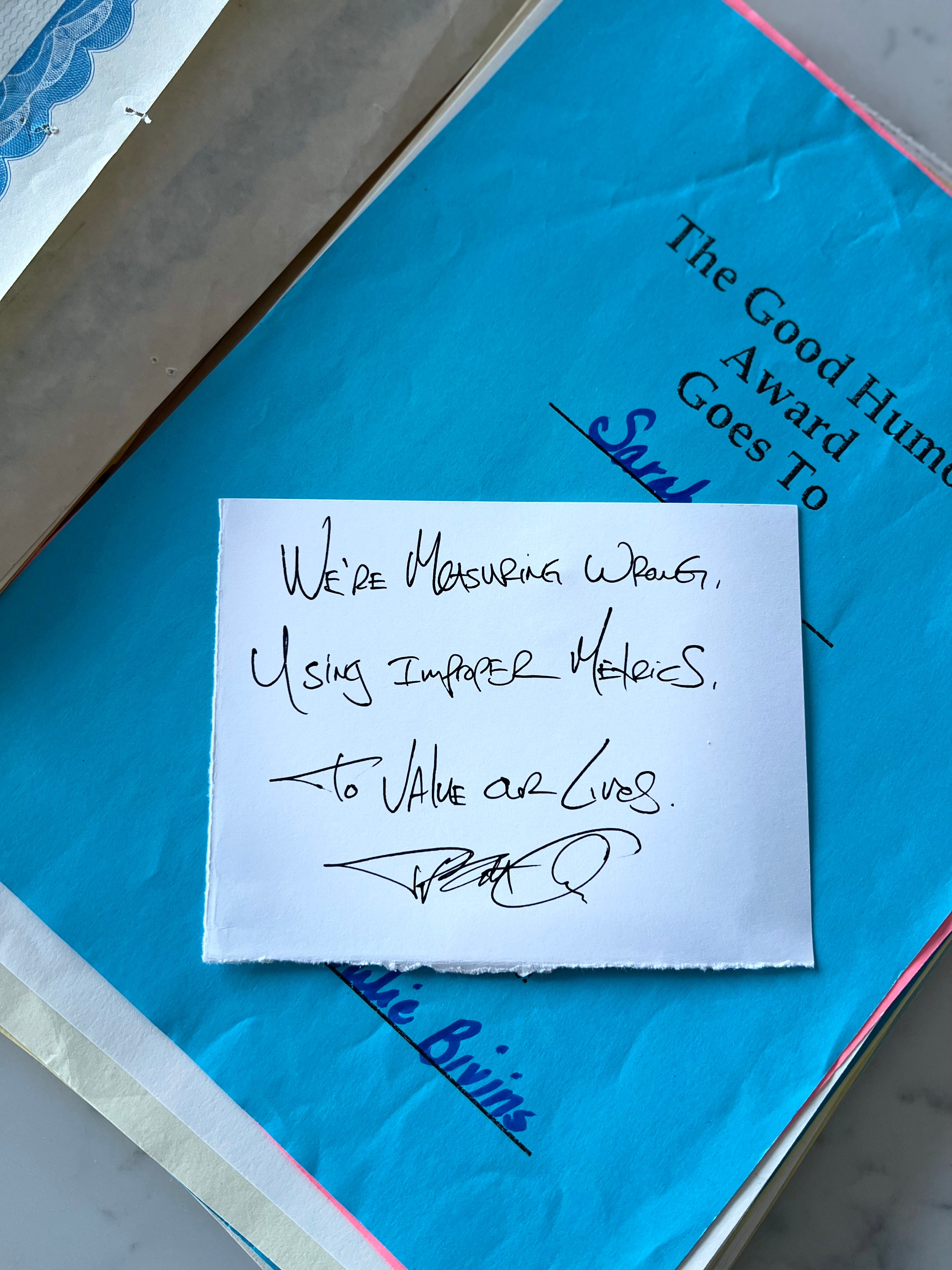 Let’s measure life instead, by the following metrics, these few of what could be many: