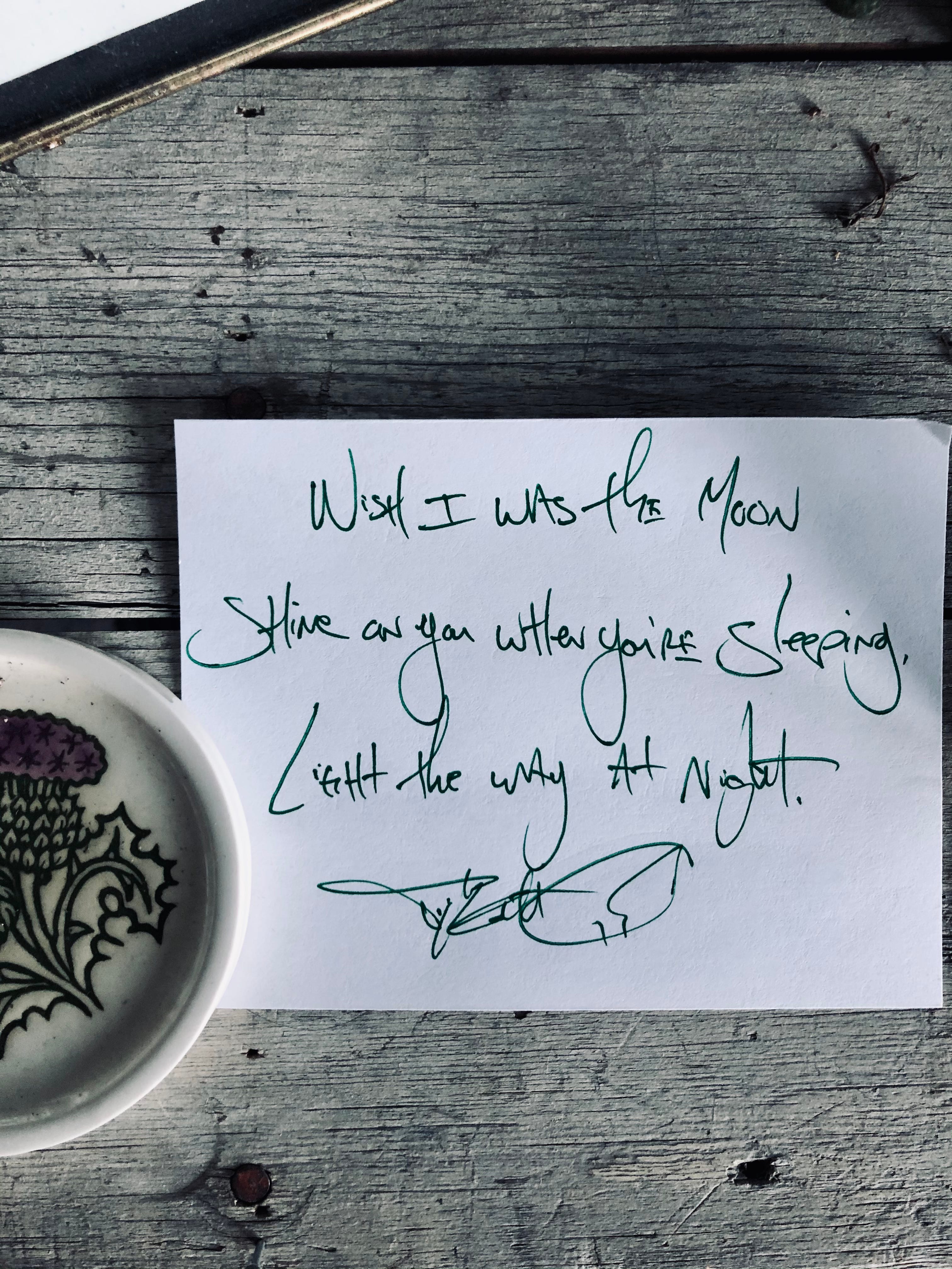 Got a thing for the moon, I do. This little love affair with the gentleness of the light it shines, the way it blankets all things in glow, but does it so unassumingly. It’s a mirror, that’s it and that’s all, shining light that’s been shined upon it back, giving it all away even though half of it lives in darkness. I think I relate to the moon, always have, the way it probably feels like two things at once, a source of such light, a source of such dark. I understand this, and so often wish to be the moon, wish to shine the light I’m given to those around me, to those that need it, to those that don’t ever ask. To wrap them in glow and light the way in the hours of darkness they endure. I’m half light, but I’m half shadow, and I know this of myself. I’m working on the light part, working on giving it away constantly, working on shining any good that’s been shined on me right back to those around me. I know I’ve got more work to do, but my goodness, I’m trying my best. Are you?