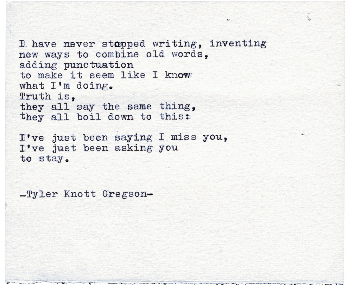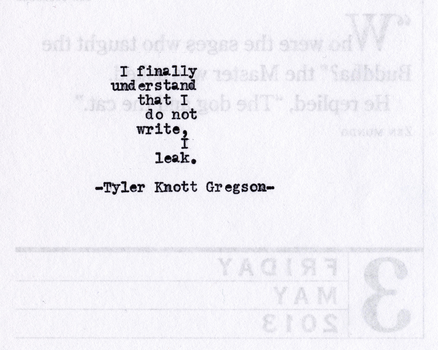 For me, the block never comes because I have never sat down and “tried” to write. I have never forced it, never harnessed myself to any expectation or quantity (or quality) of output. I wait for the ache to build, I sit, and as the little poem above says, “I leak.” I just leak it out, all the “it” that has been building up for hours, days, weeks, or months. I write to express what I don’t know how to with photographs, and what needs to be let loose from my wild and unruly mind. I write, as the poem says below, to say I love you, I miss you, I want you to stay, I’m scared, I’m tired, lonely, bored, in awe, curious, elated, aroused, or amused. I write to travel through time, backwards for my melancholy meandering through nostalgia, forward if I understand that the words I have written will exist so long after I have gone. Somehow, these aches have ended up in bookstores, in magazines, in advertisements, in libraries—in the Library of Congress!—and I will never understand this, I will never call it anything short of magic.